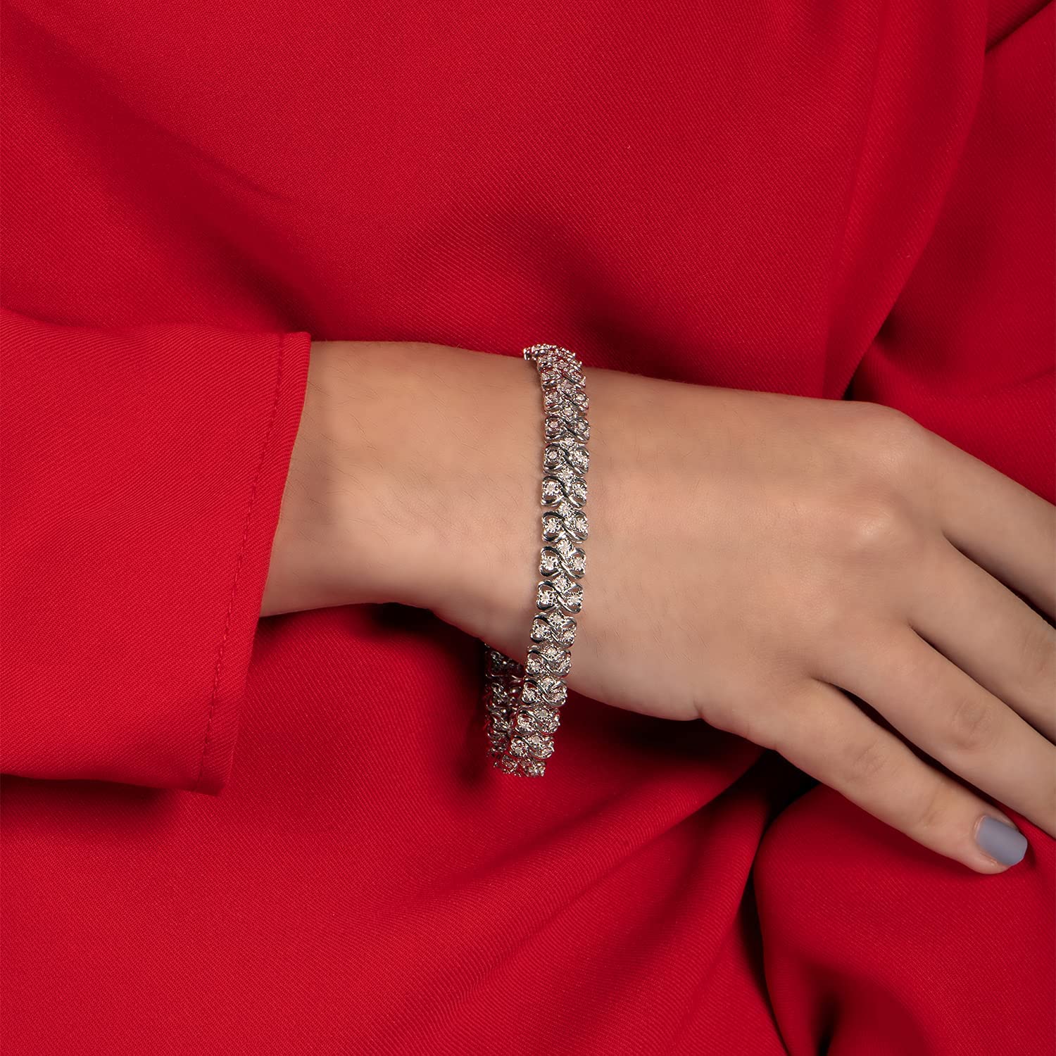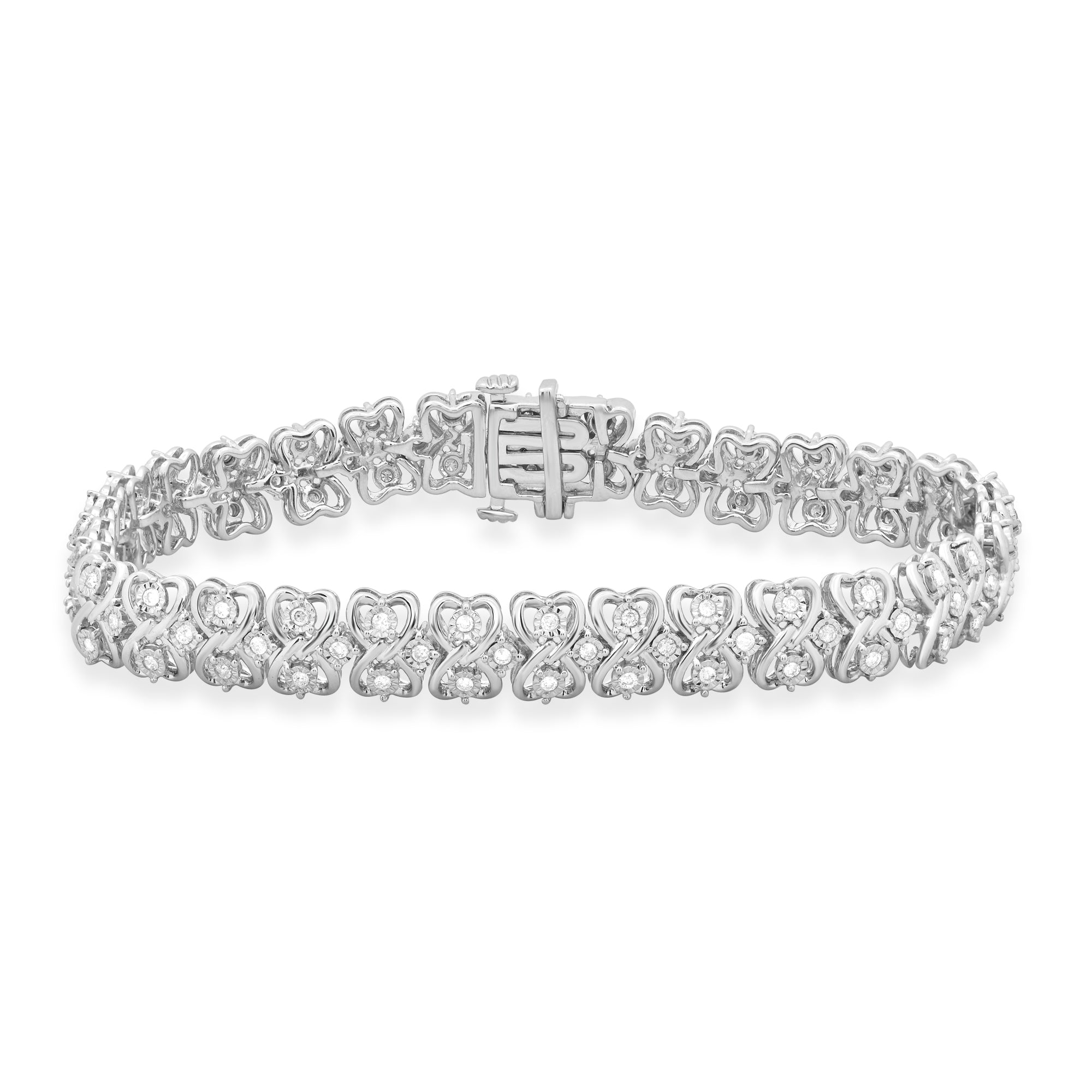 Jewelili Sterling Silver With 1.00 CTTW Natural Round Diamonds Link Bracelet, 7.5"