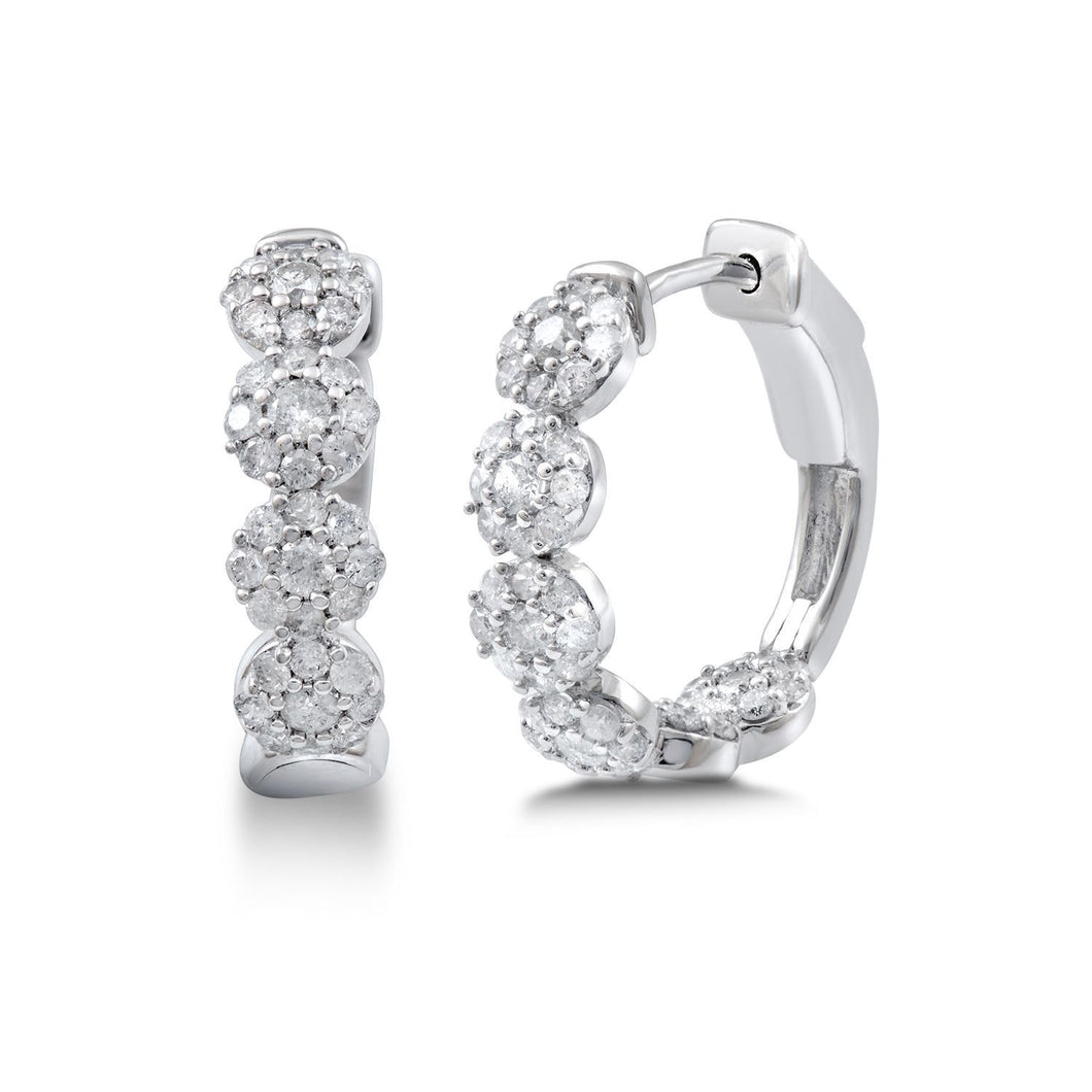 Jewelili Sterling Silver With 1.00 CTTW Natural White Diamond Hoop Earrings