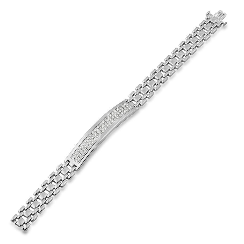 • Sterling Silver With 1.0Cttw Natural White Diamonds Men's Link Bracelet