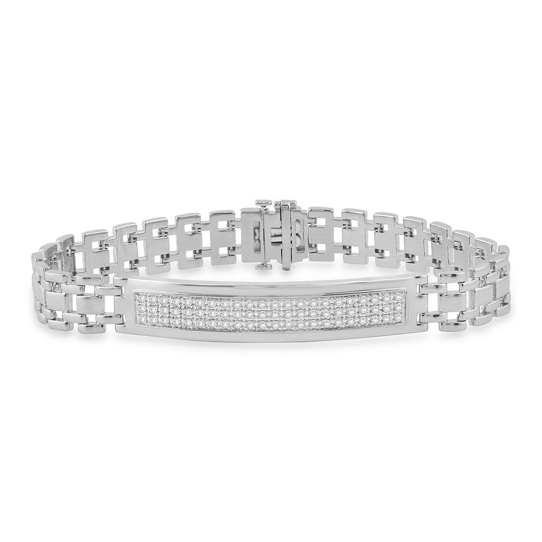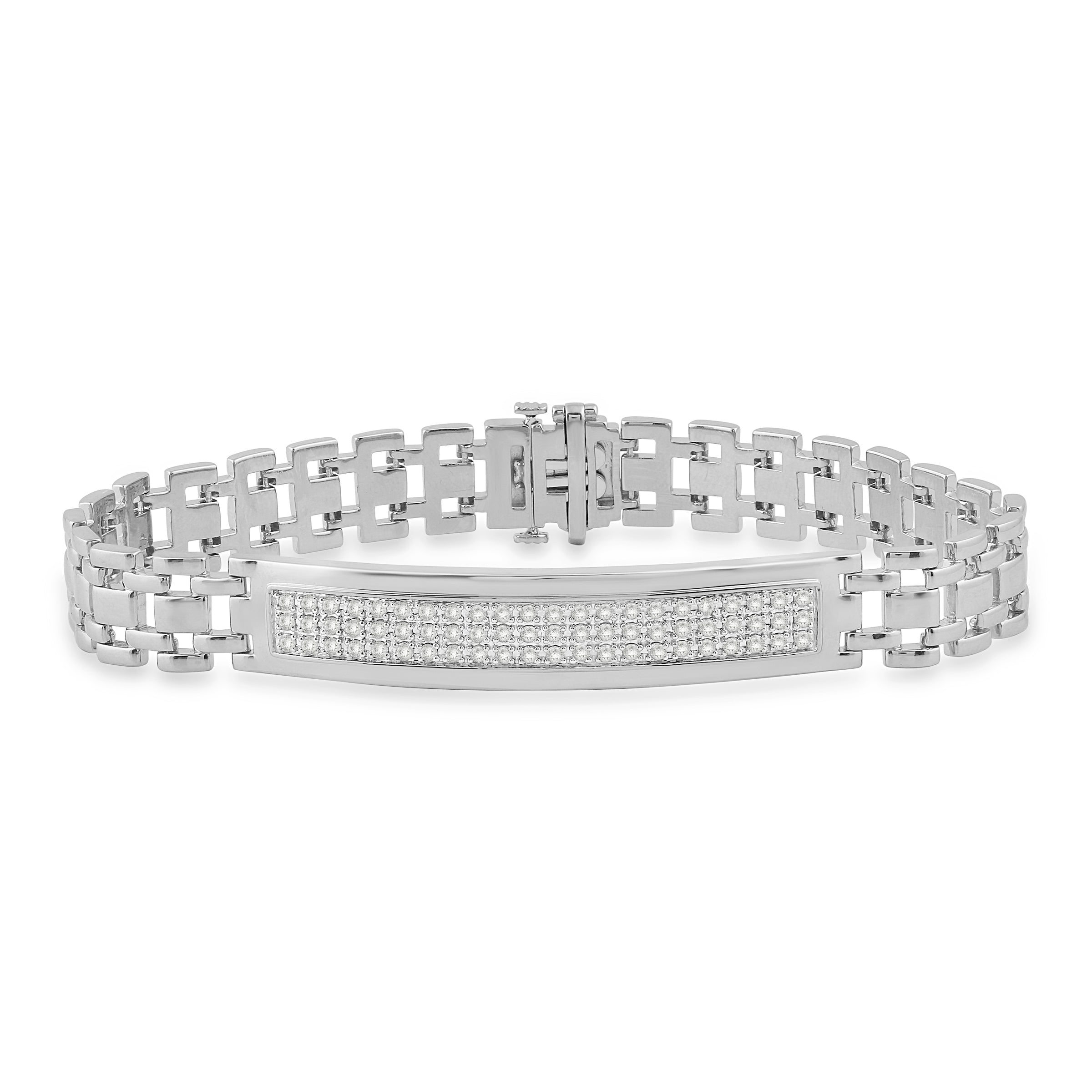 Jewelili Sterling Silver With 1.0 CTTW Natural White Diamonds Men's Link Bracelet