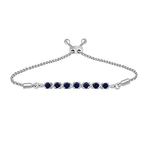 Jewelili Sterling Silver with Round Created Ruby,Created White Sapphire and Created Blue Sapphire Bolo Bracelet Set