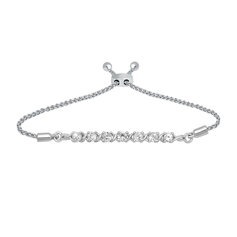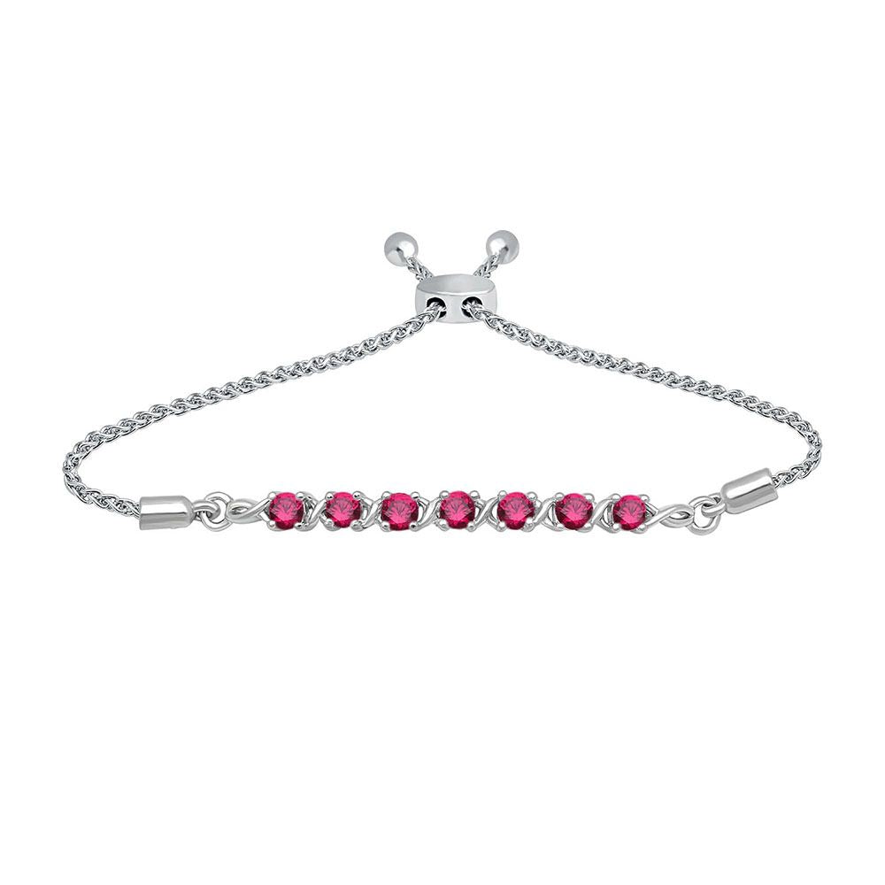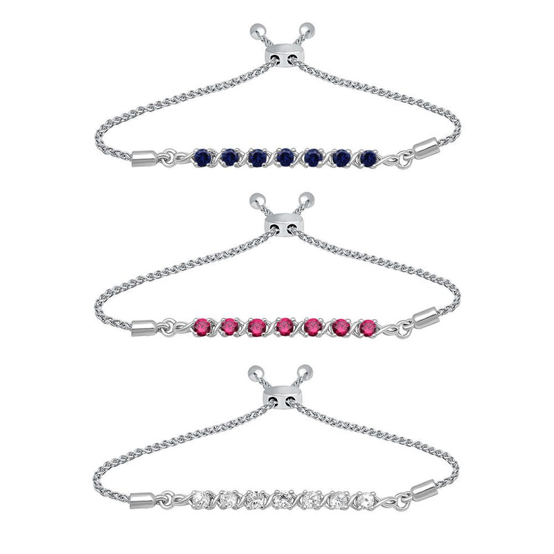 • Sterling Silver with Round Created Ruby,Created White Sapphire and Created Blue Sapphire Bolo Bracelet Set