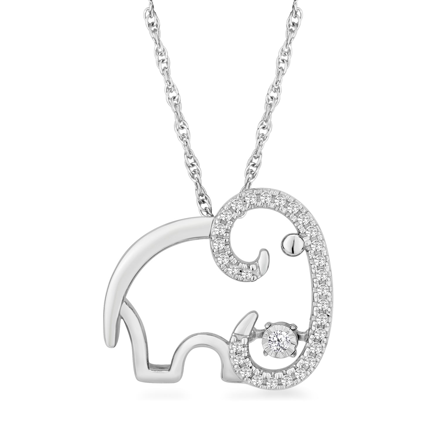 Jewelili Sterling Silver With 1/10 CTTW Dancing Diamonds Pendant Necklace
