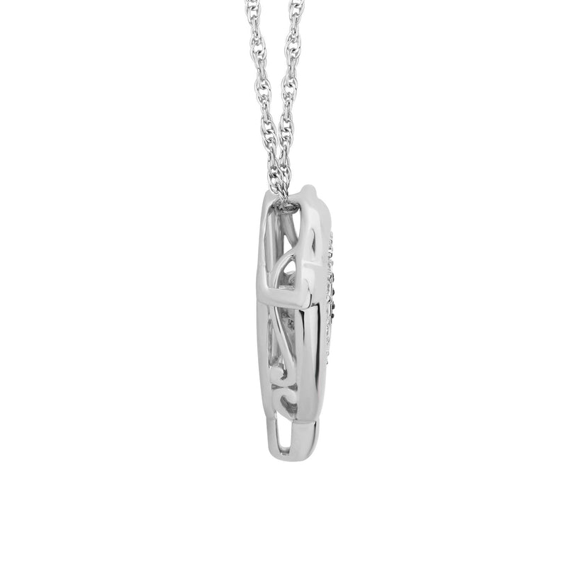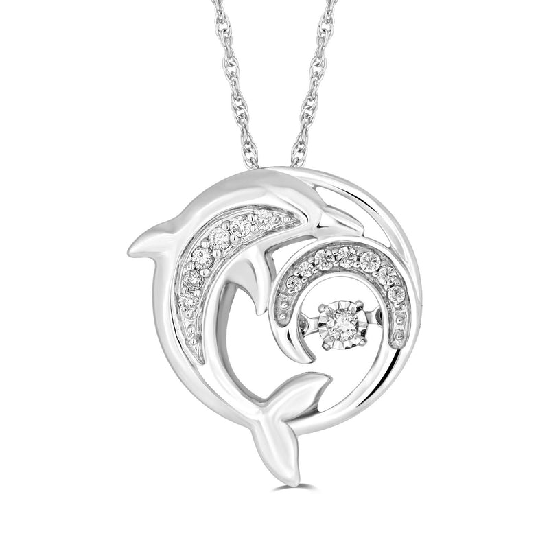 Jewelili Sterling Silver With 1/10 CTTW Diamonds with Dolphin Pendant Necklace