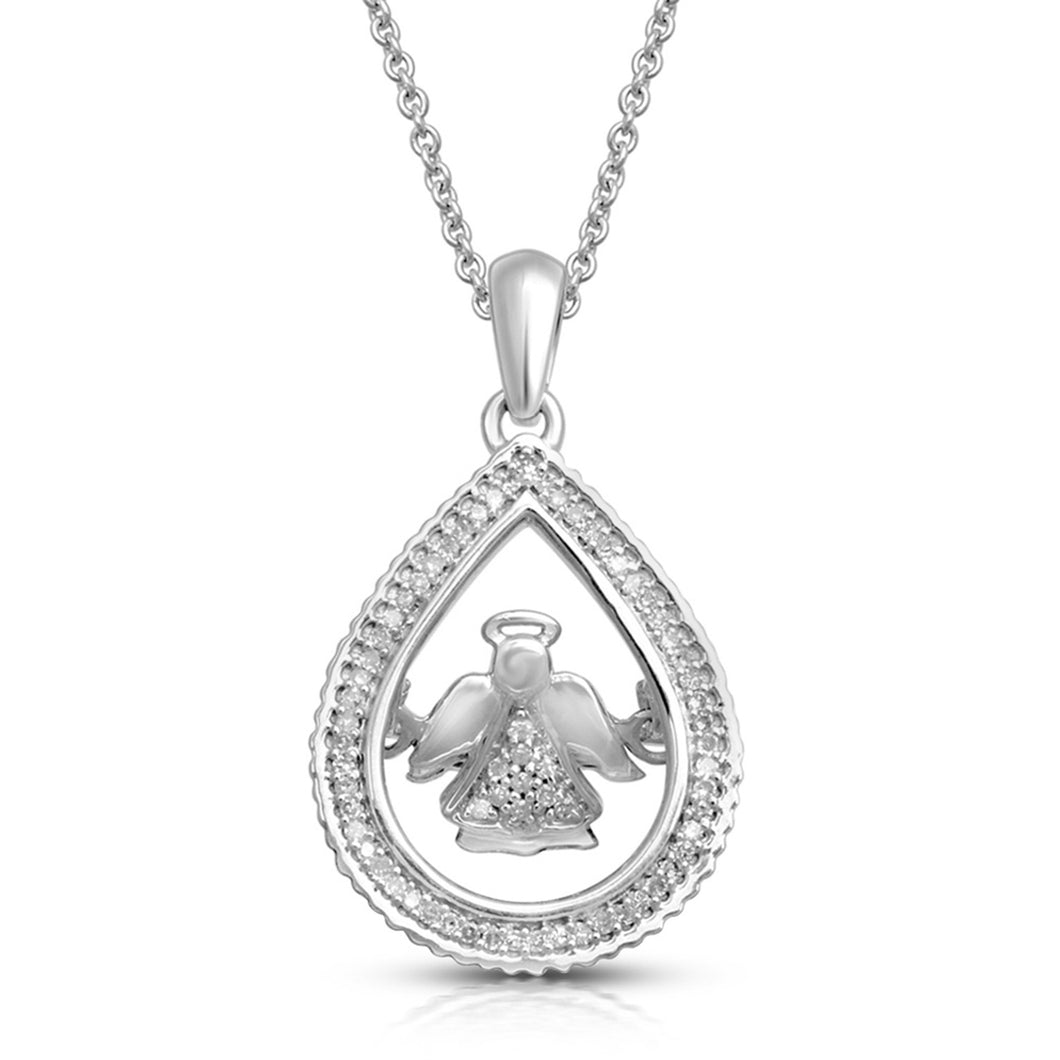 • Sterling Silver with 1/10 Cttw Diamonds Dancing Angel Teardrop Pendant Necklace