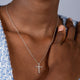 • Load image into Gallery viewer, Jewelili Sterling Silver With 1/10 CTTW Natural Diamonds Cross Pendant Necklace