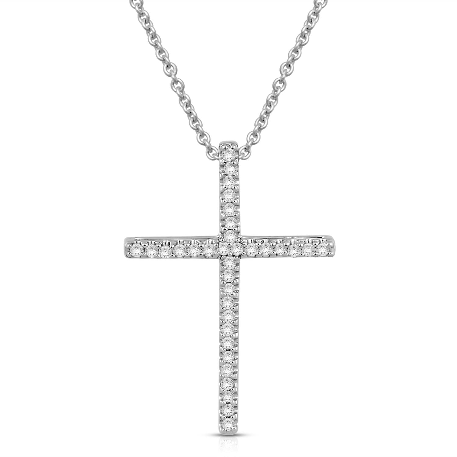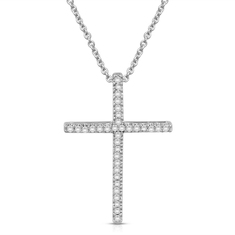 Jewelili Sterling Silver With 1/10 CTTW Natural Diamonds Cross Pendant Necklace