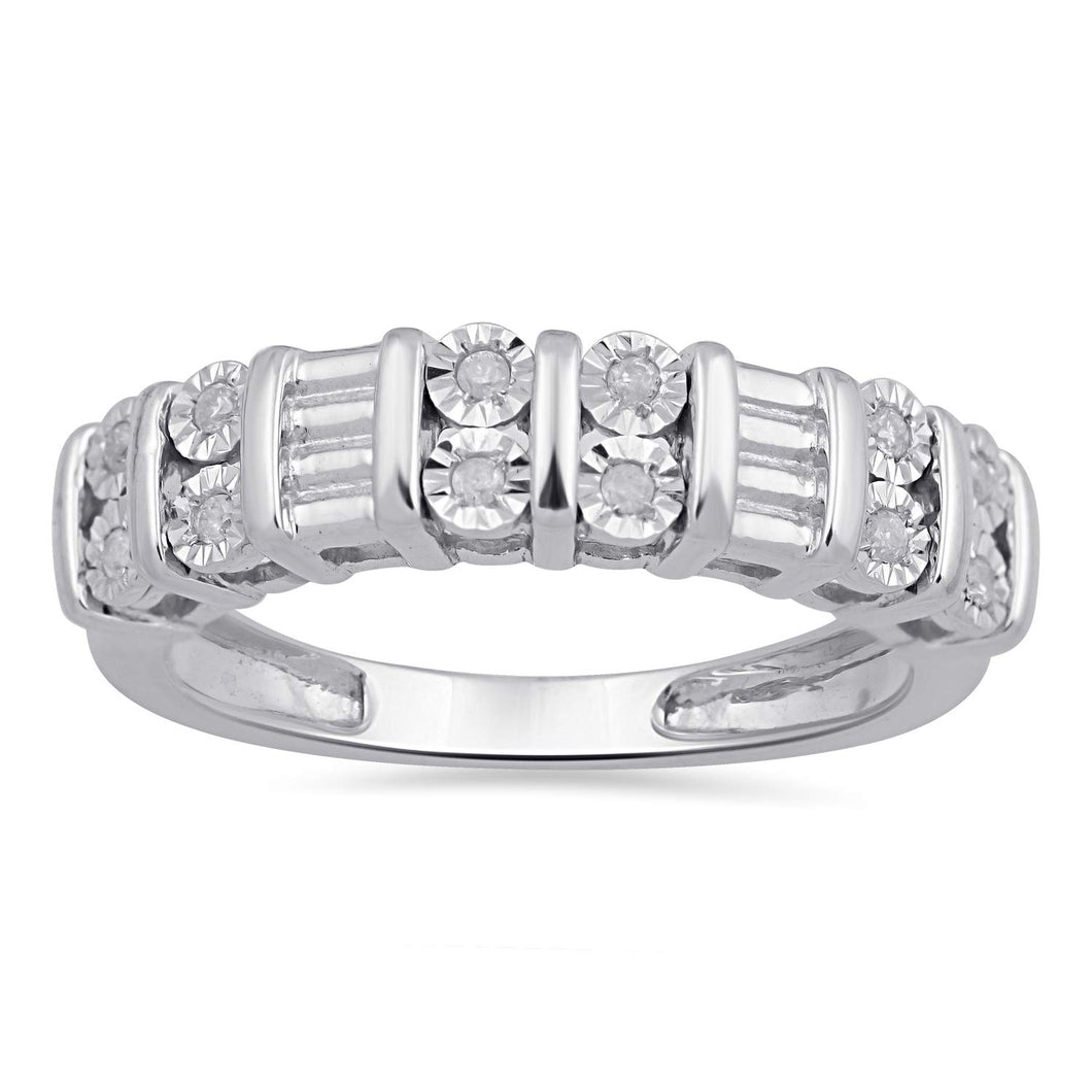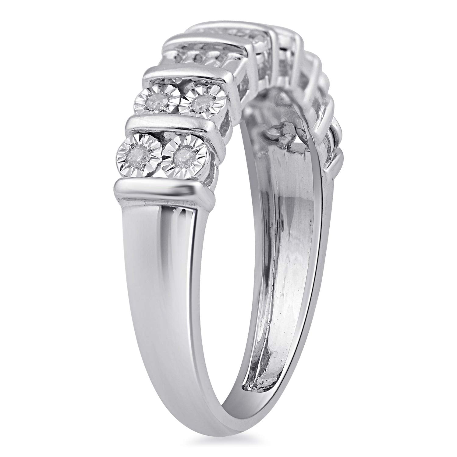Jewelili Sterling Silver With 1/10 CTTW Natural White Diamond Anniversary Band