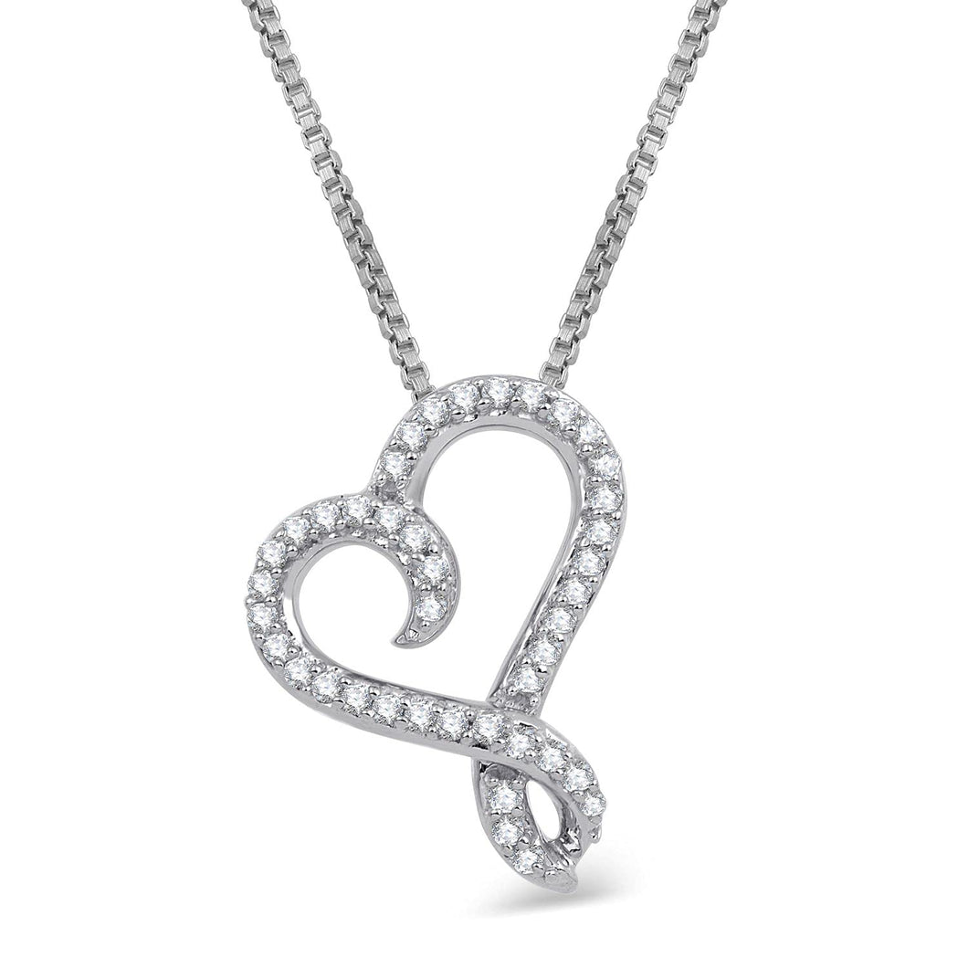 Jewelili Sterling Silver with 1/10 CTTW Natural White Diamonds Heart Pendant Necklace