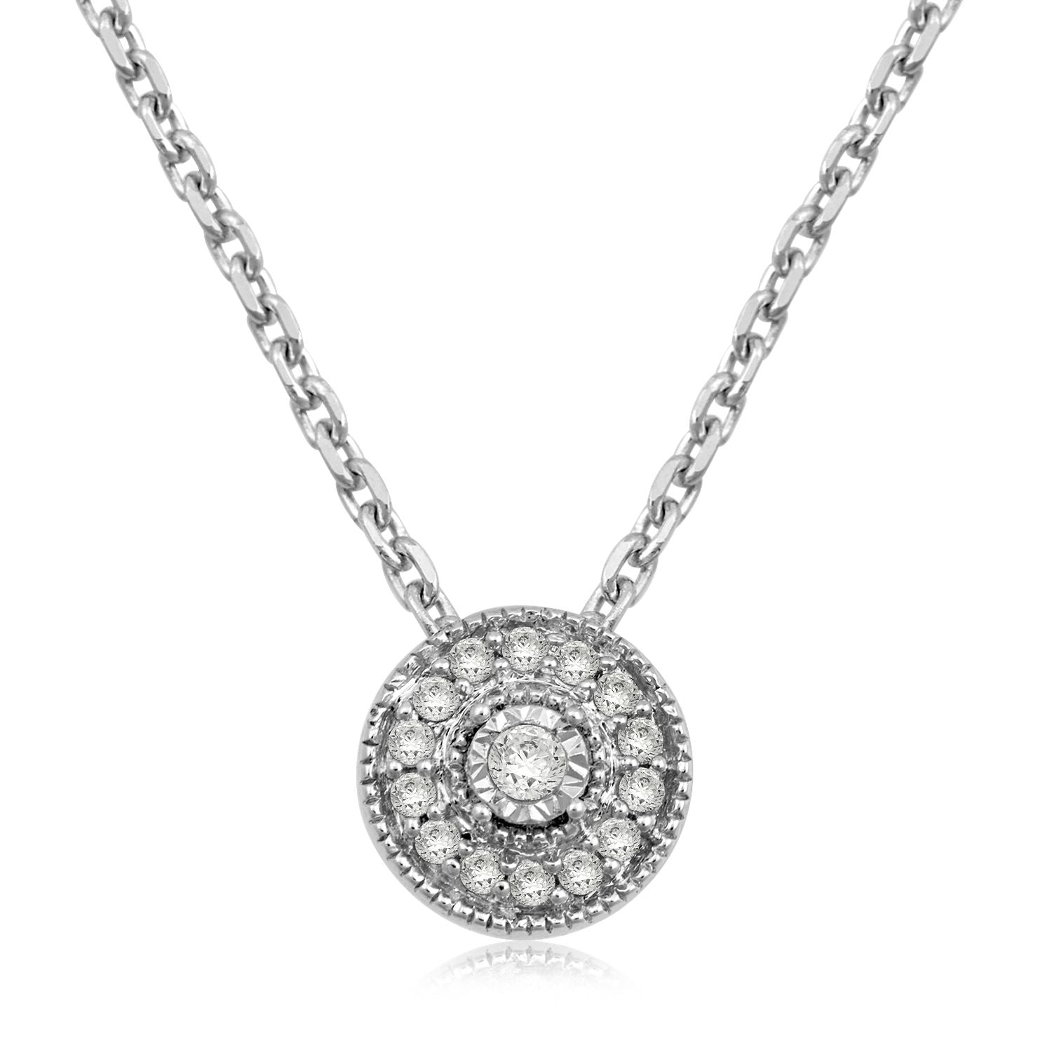 • Sterling Silver With 1/10 Cttw Natural White Diamonds Round Pendant Necklace