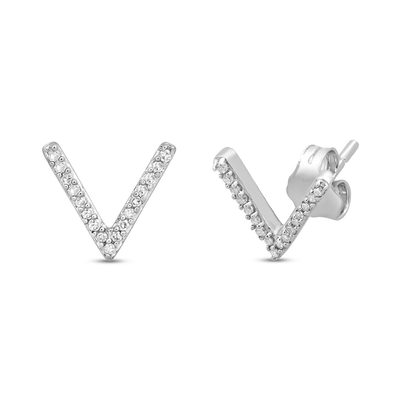• Sterling Silver With 1/10 Cttw Natural White Diamond V Shape Stud Earrings