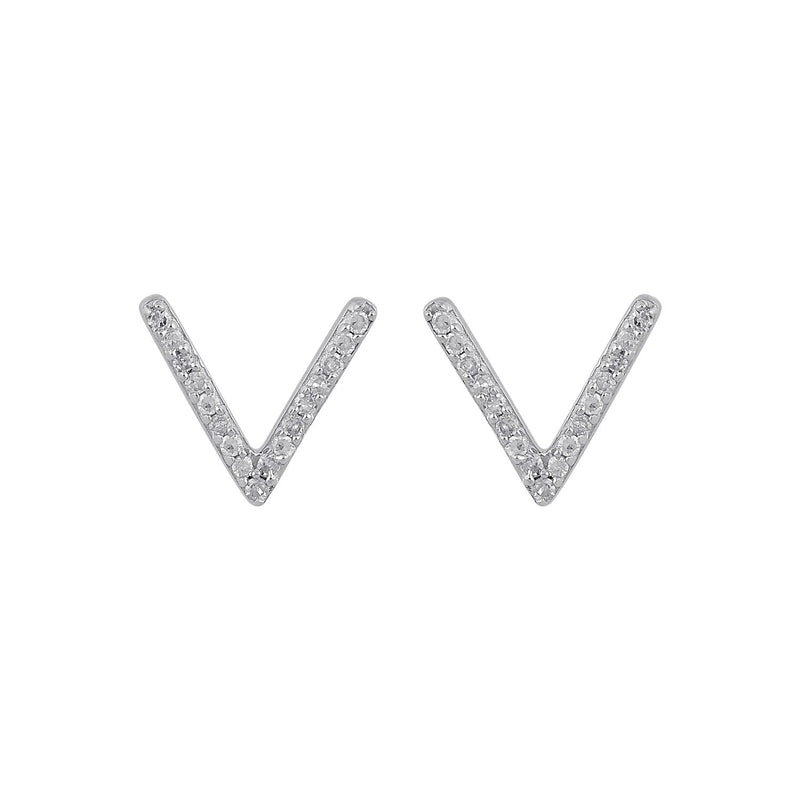 Jewelili Sterling Silver With 1/10 CTTW Natural White Diamond V Shape Stud Earrings