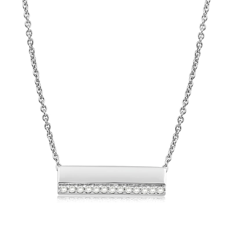 • Sterling Silver With 1/10 Cttw Natural White Diamonds Bar Pendant Necklace.
