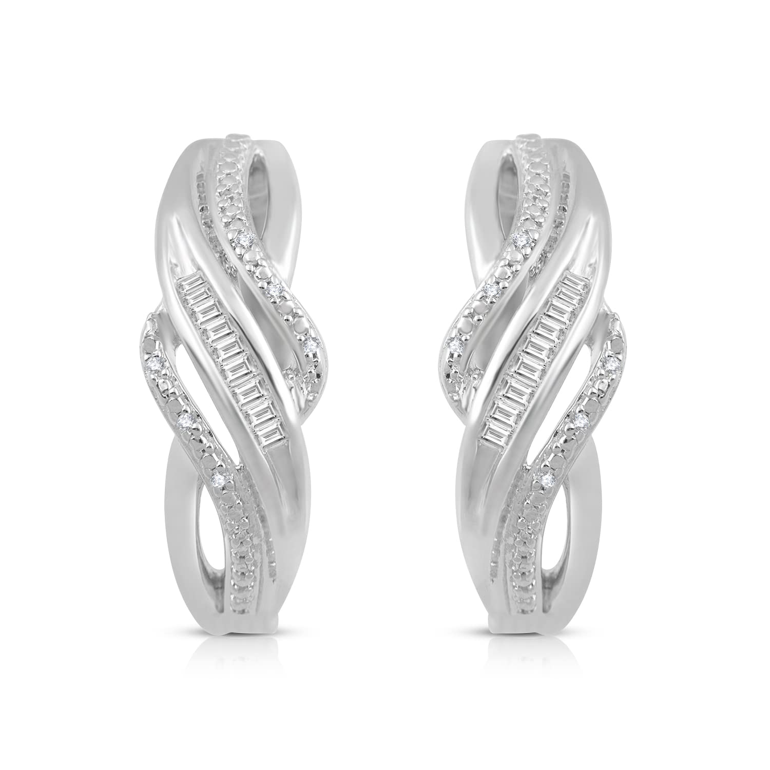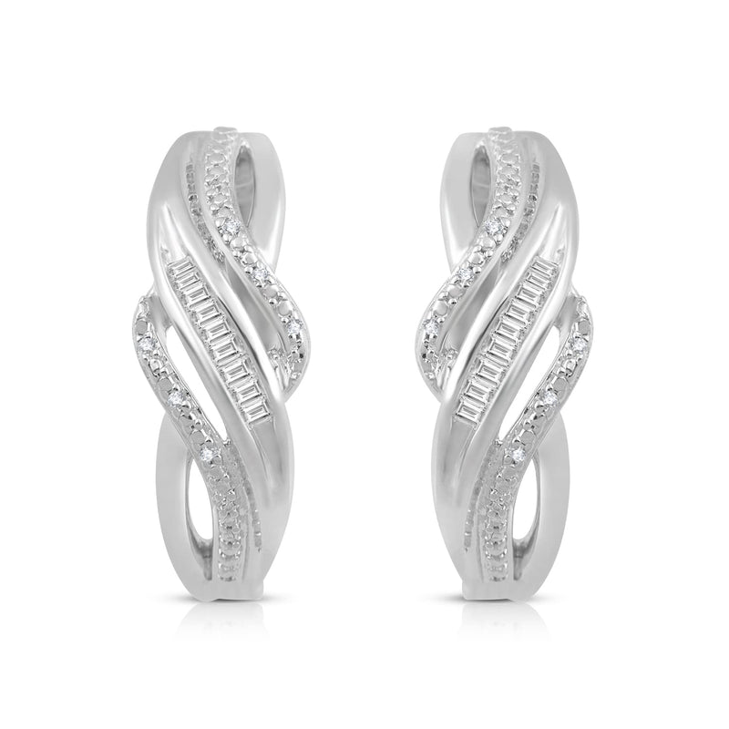 • Sterling Silver With 1/10 Cttw Natural White Diamonds Hoop Earrings
