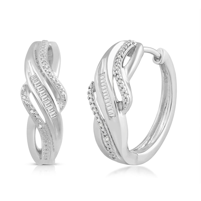 Jewelili Sterling Silver With 1/10 CTTW Natural White Diamonds Hoop Earrings