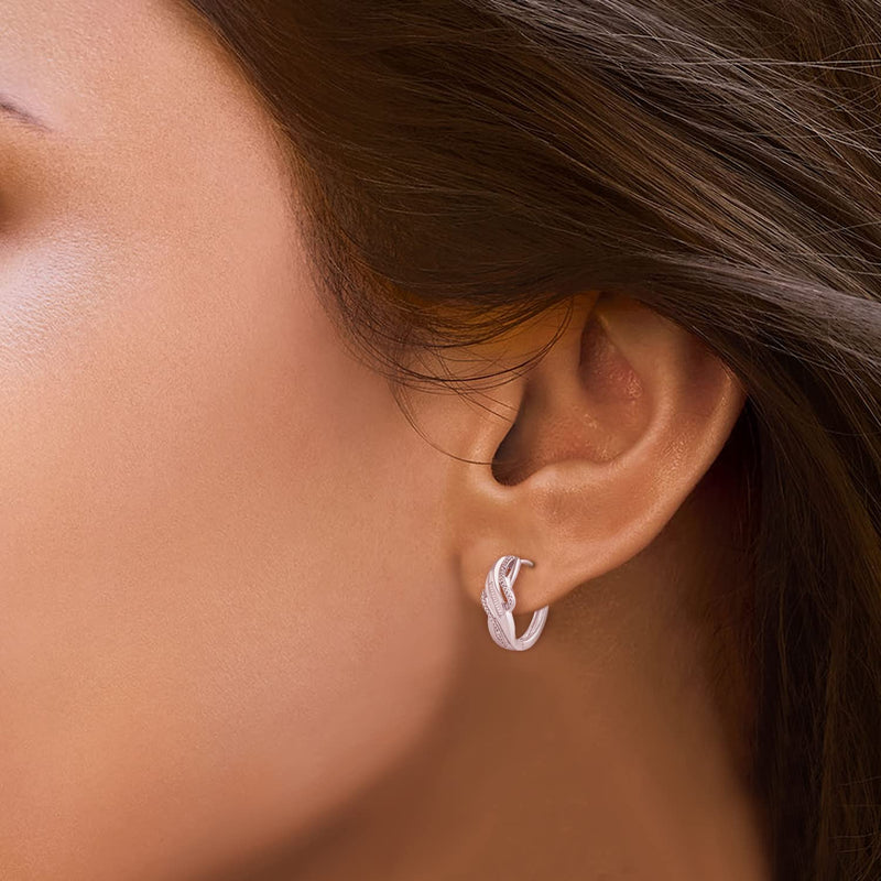• Load image into Gallery viewer, Jewelili Hoop Earrings with Natural White Diamonds in Sterling Silver 1/10 CTTW View 3