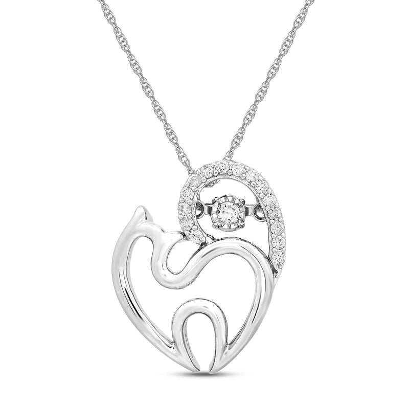 Jewelili Sterling Silver With 1/10 CTTW Natural White Round Cut Dancing Diamonds Cat Pendant Necklace