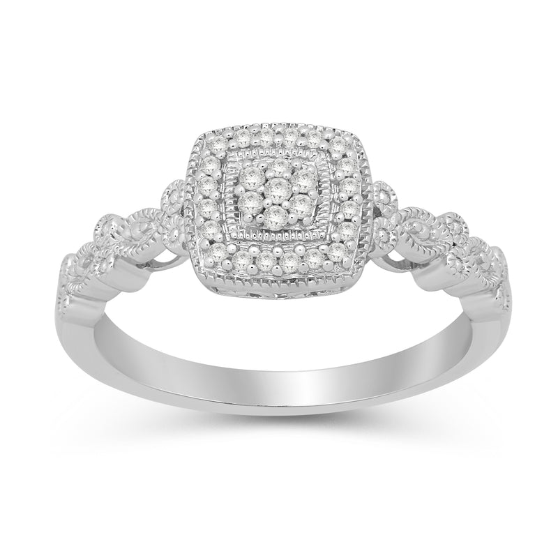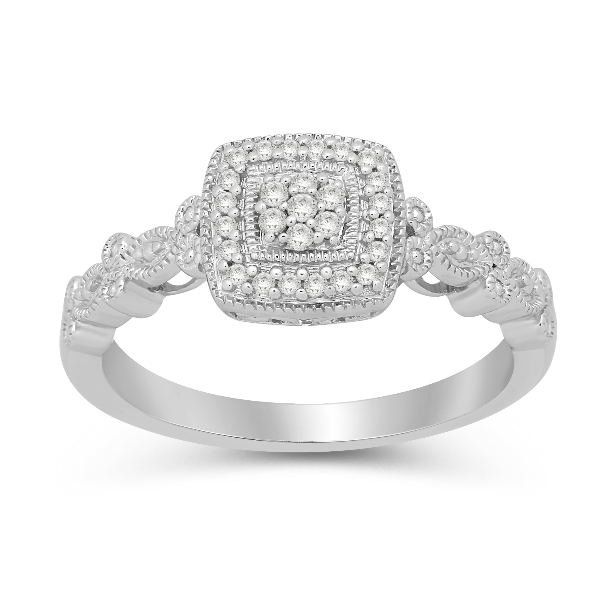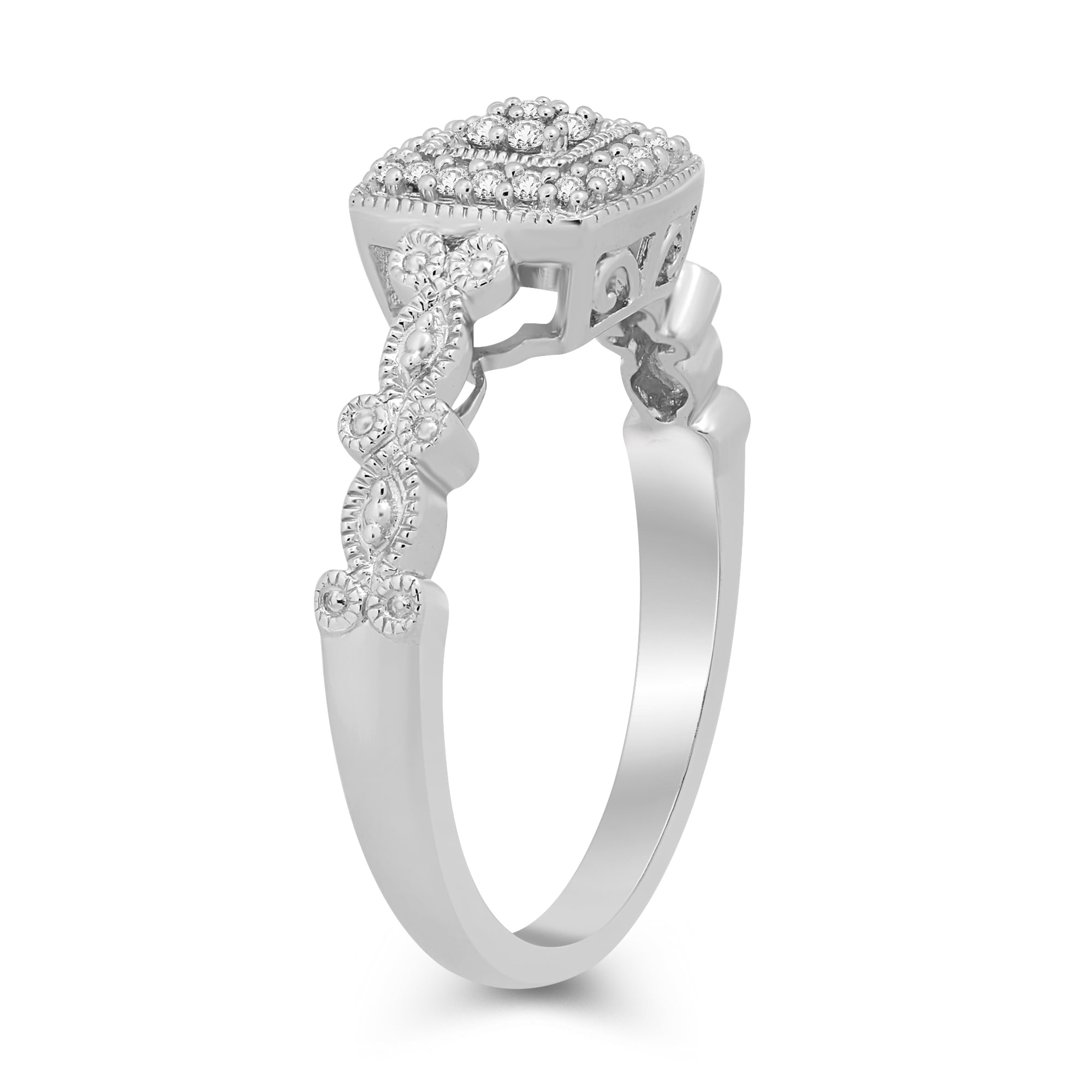 Jewelili Sterling Silver with 1/10 CTTW Natural White Round Diamonds Engagement Ring