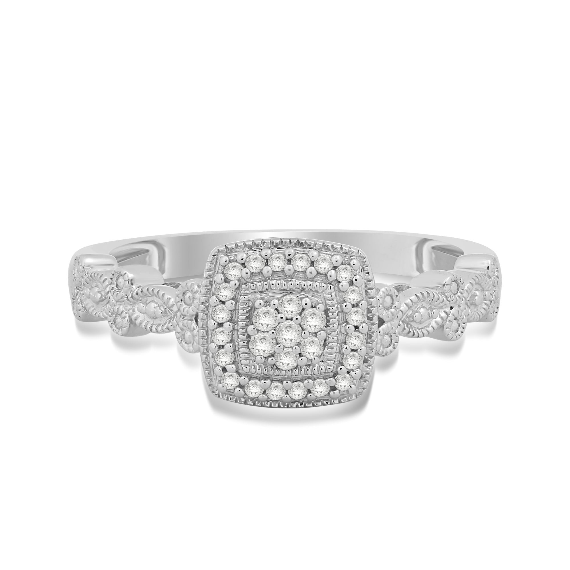 • Sterling Silver with 1/10 Cttw Natural White Round Diamond Engagement Ring