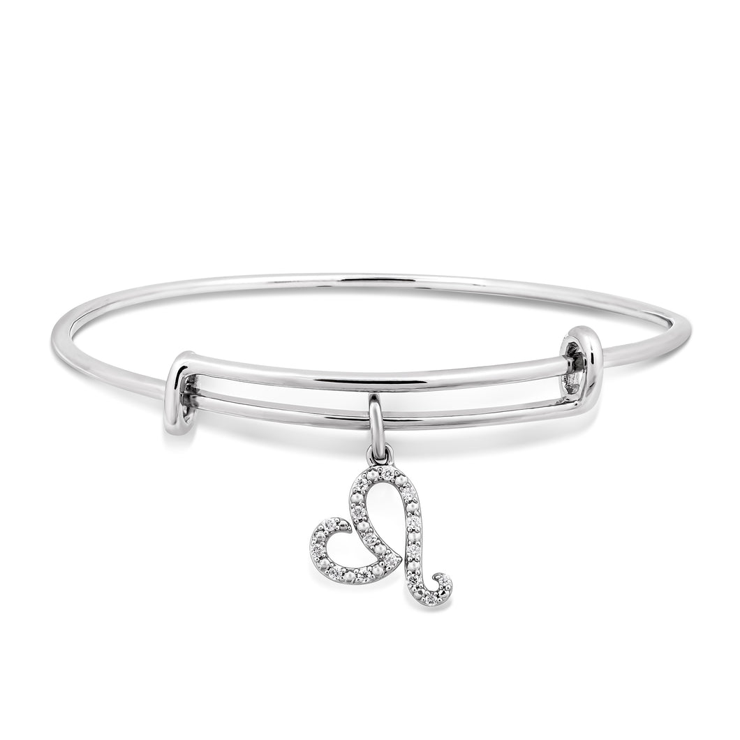 • Sterling Silver with 1/10 Cttw Natural White Round Diamond Steal Her Heart Bangle