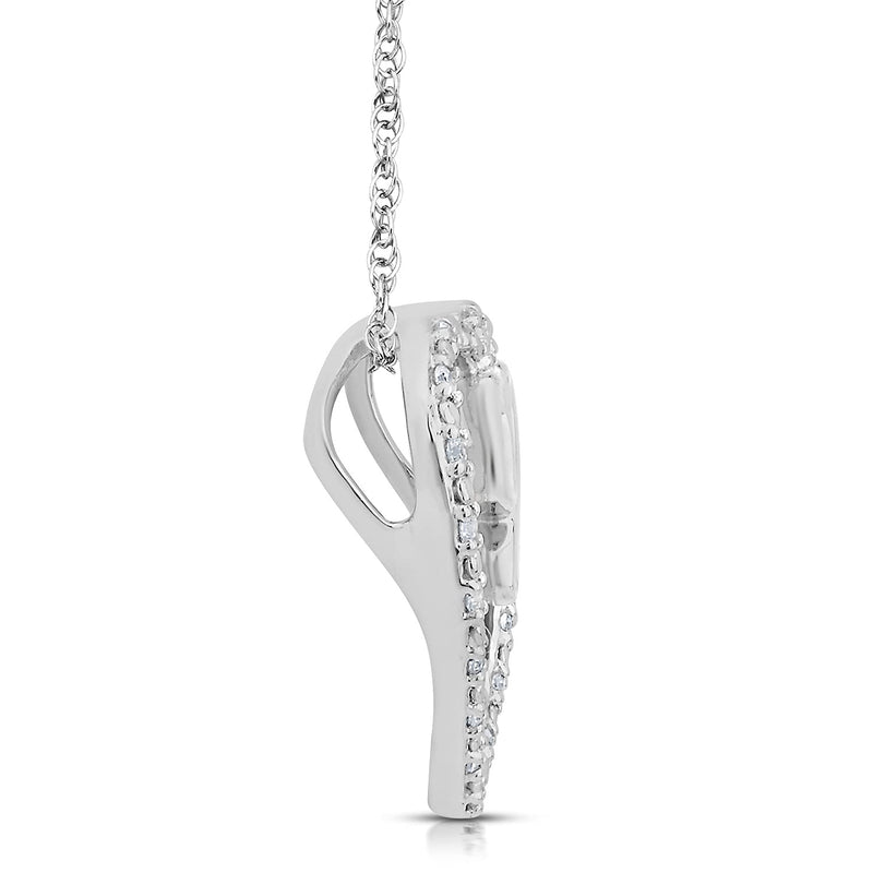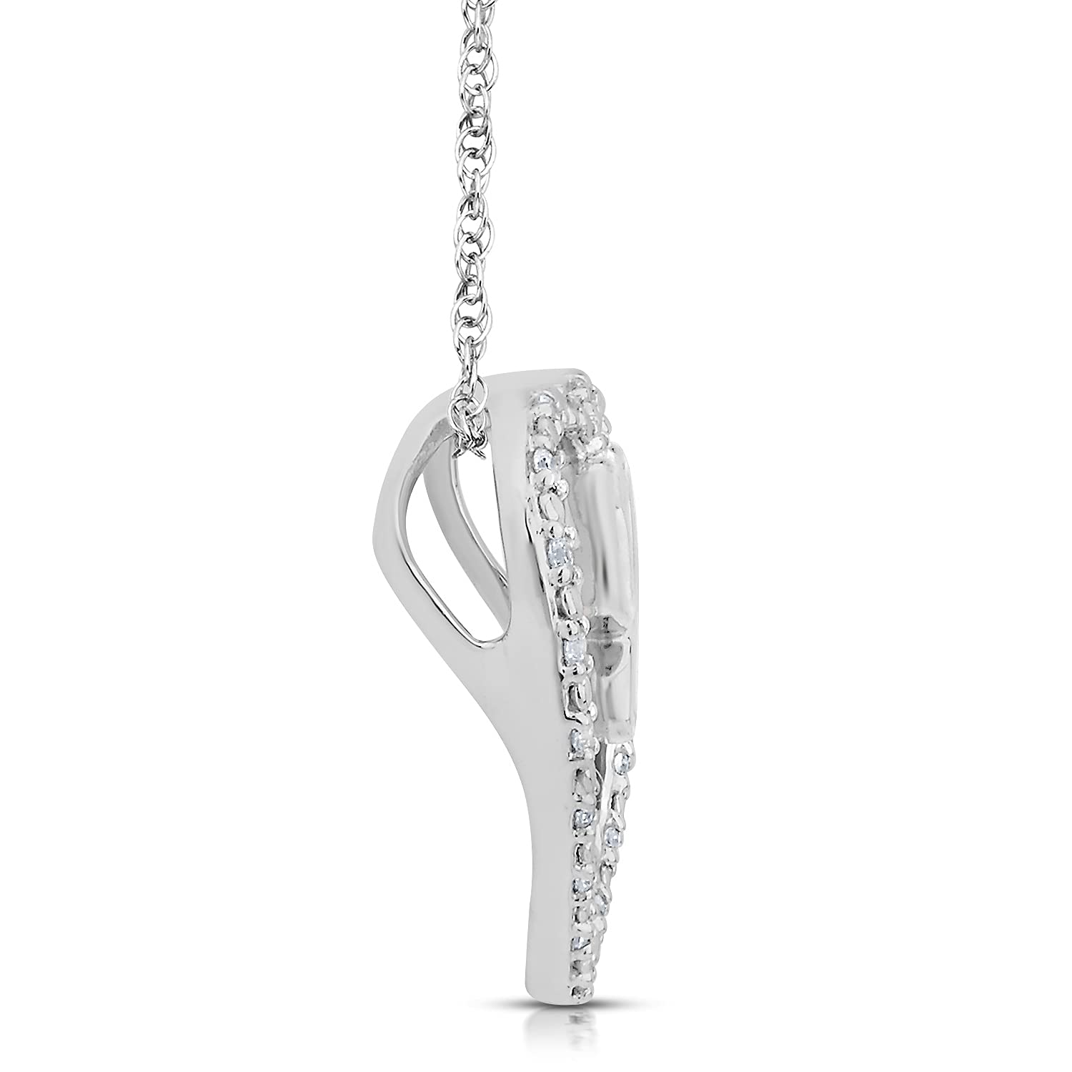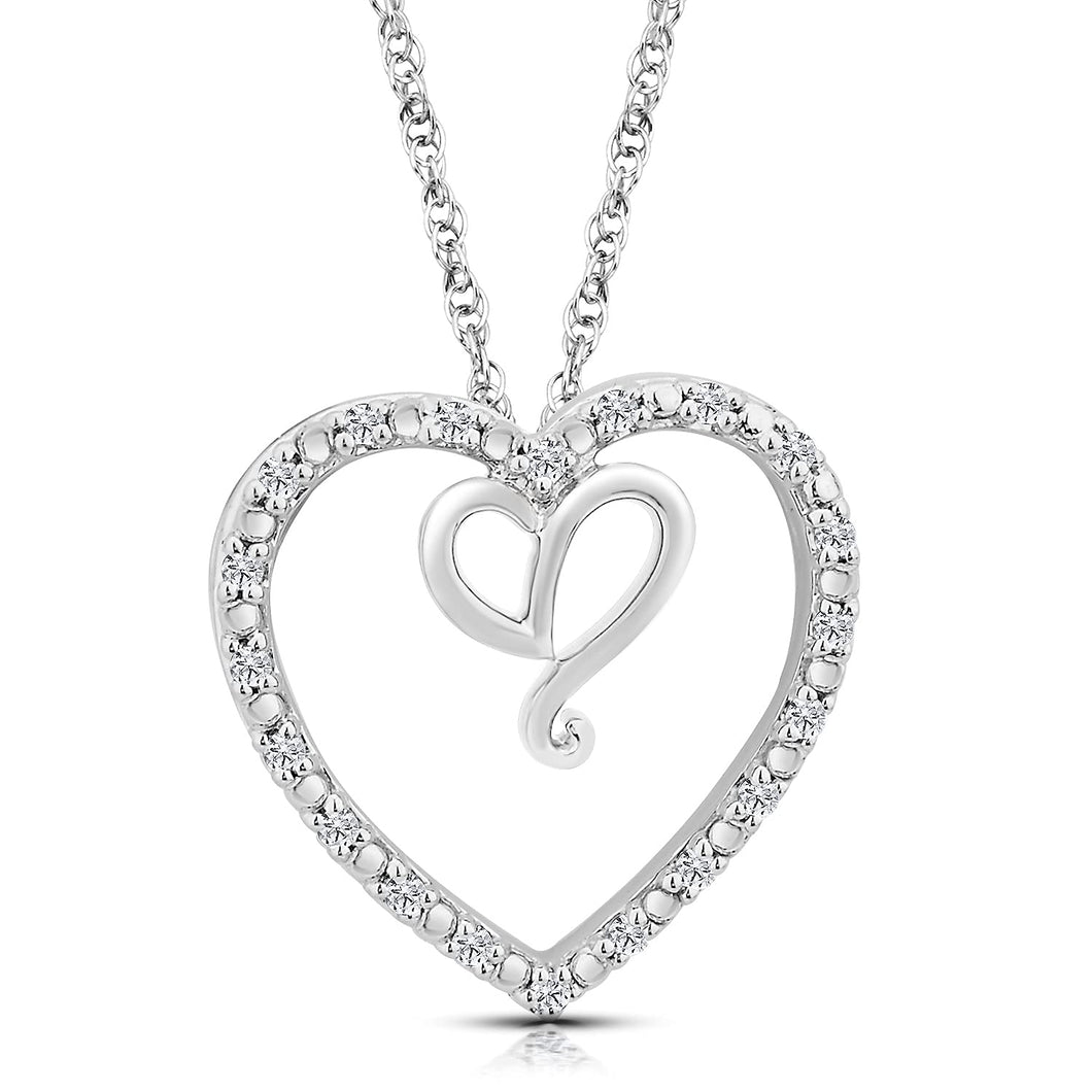 Jewelili Sterling Silver with 1/10 CTTW Natural White Round Diamonds Steal Her Heart Pendant Necklace