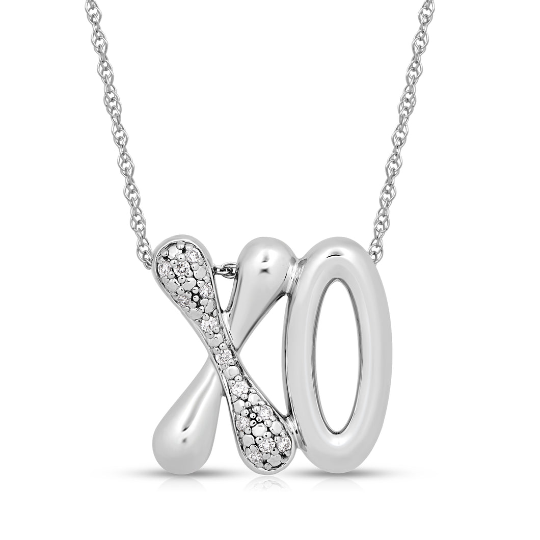 • Sterling Silver with 1/10 Cttw Natural White Round Diamond XO Pendant Necklace
