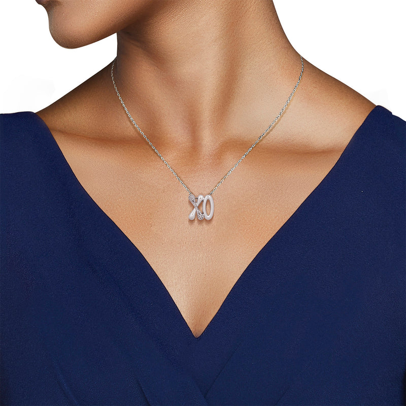 • Load image into Gallery viewer, Jewelili XO Pendant Necklace with Natural White Round Diamonds in Sterling Silver 1/10 CTTW View 1