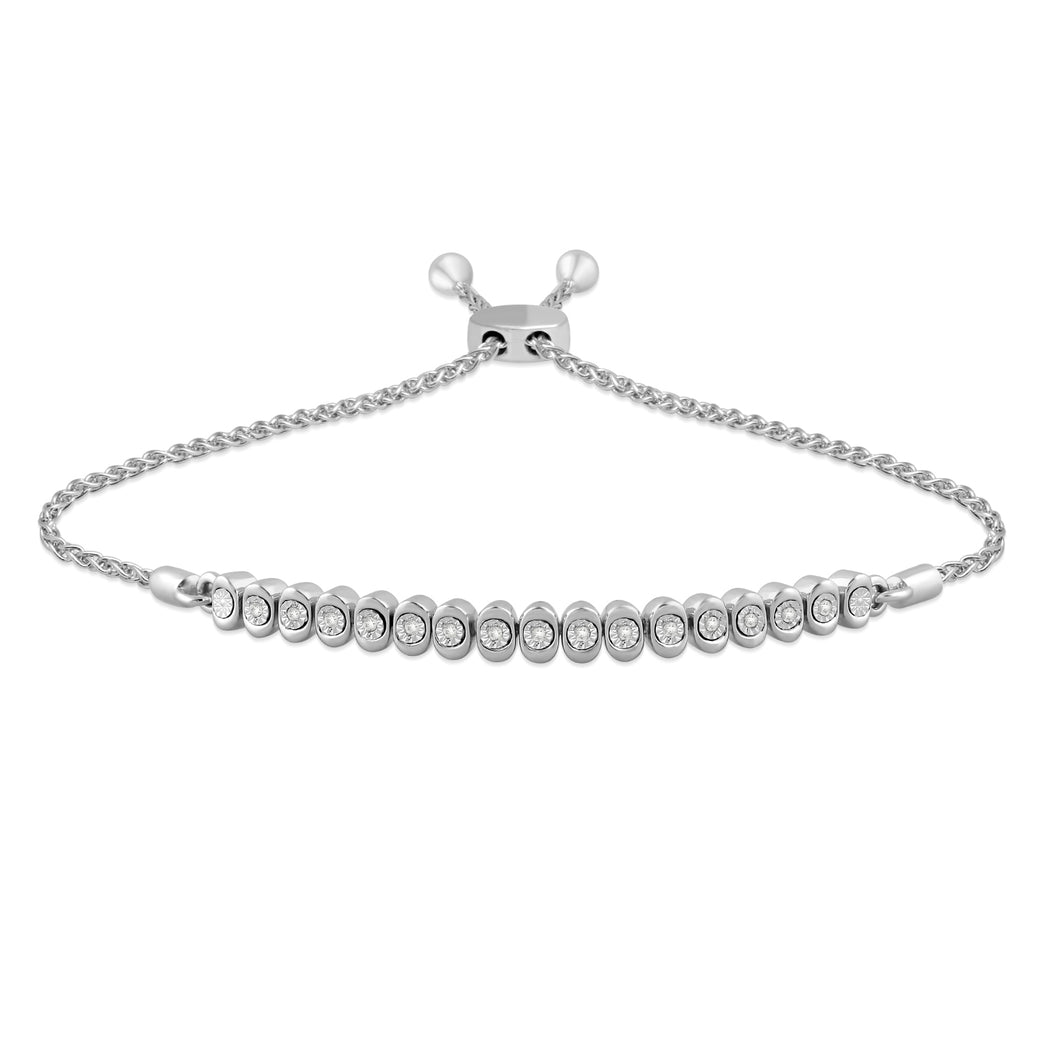 Jewelili Sterling Silver With 1/10 CTTW Natural White Round Diamonds Bolo Bracelet, Adjustable Length