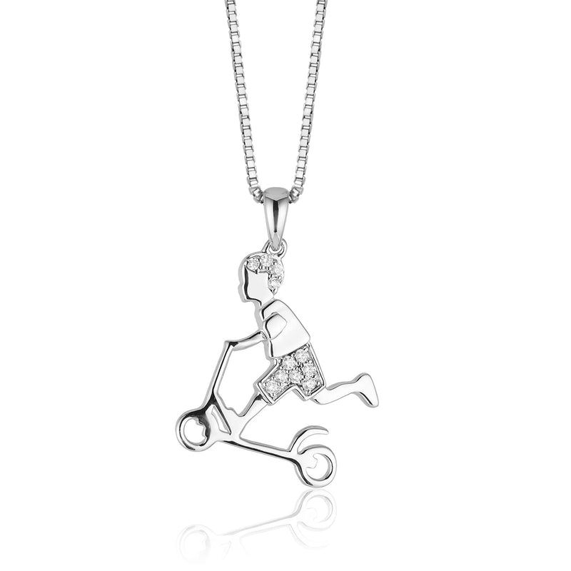 • Sterling Silver With 1/10 Cttw Natural White Round Diamonds Charm Pendant Necklace