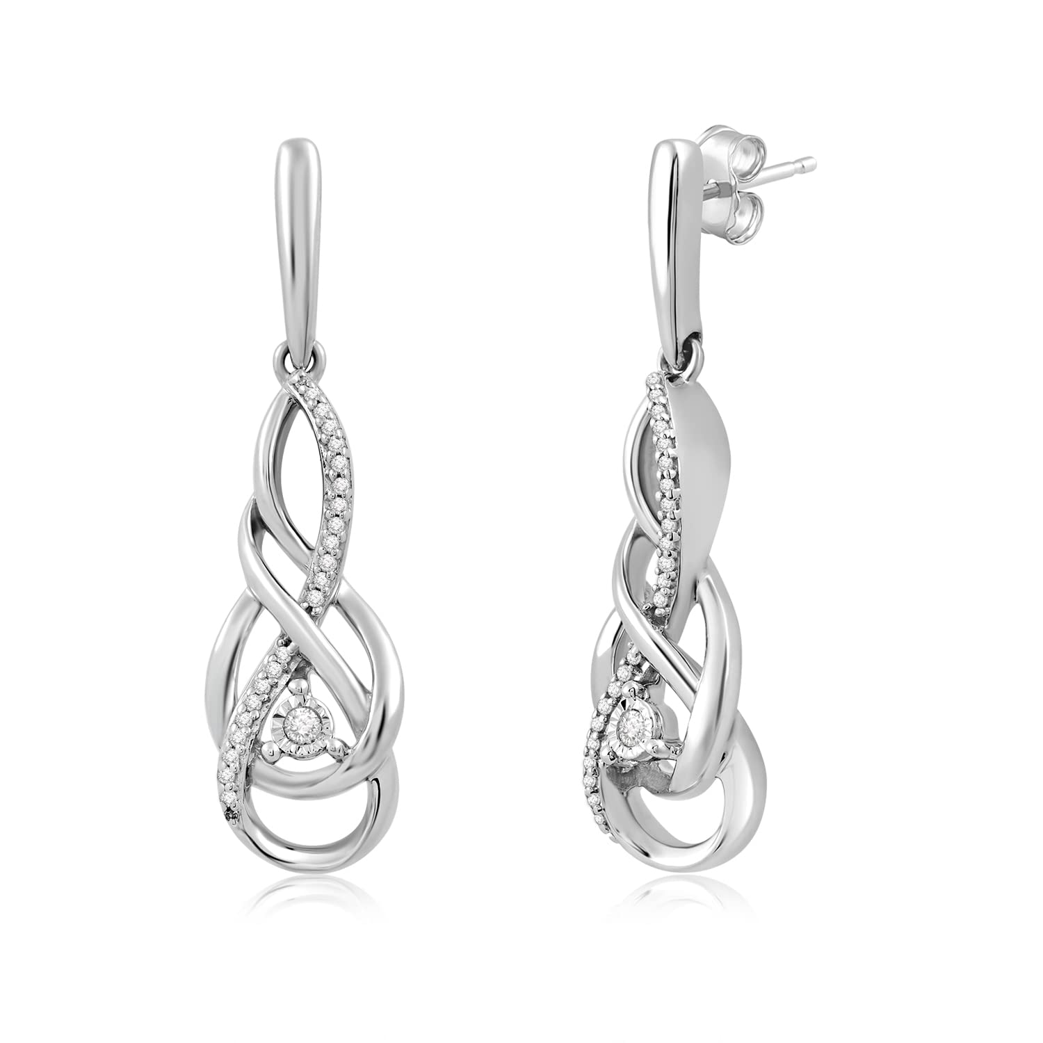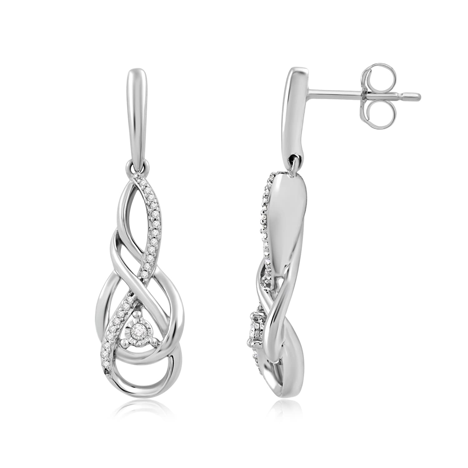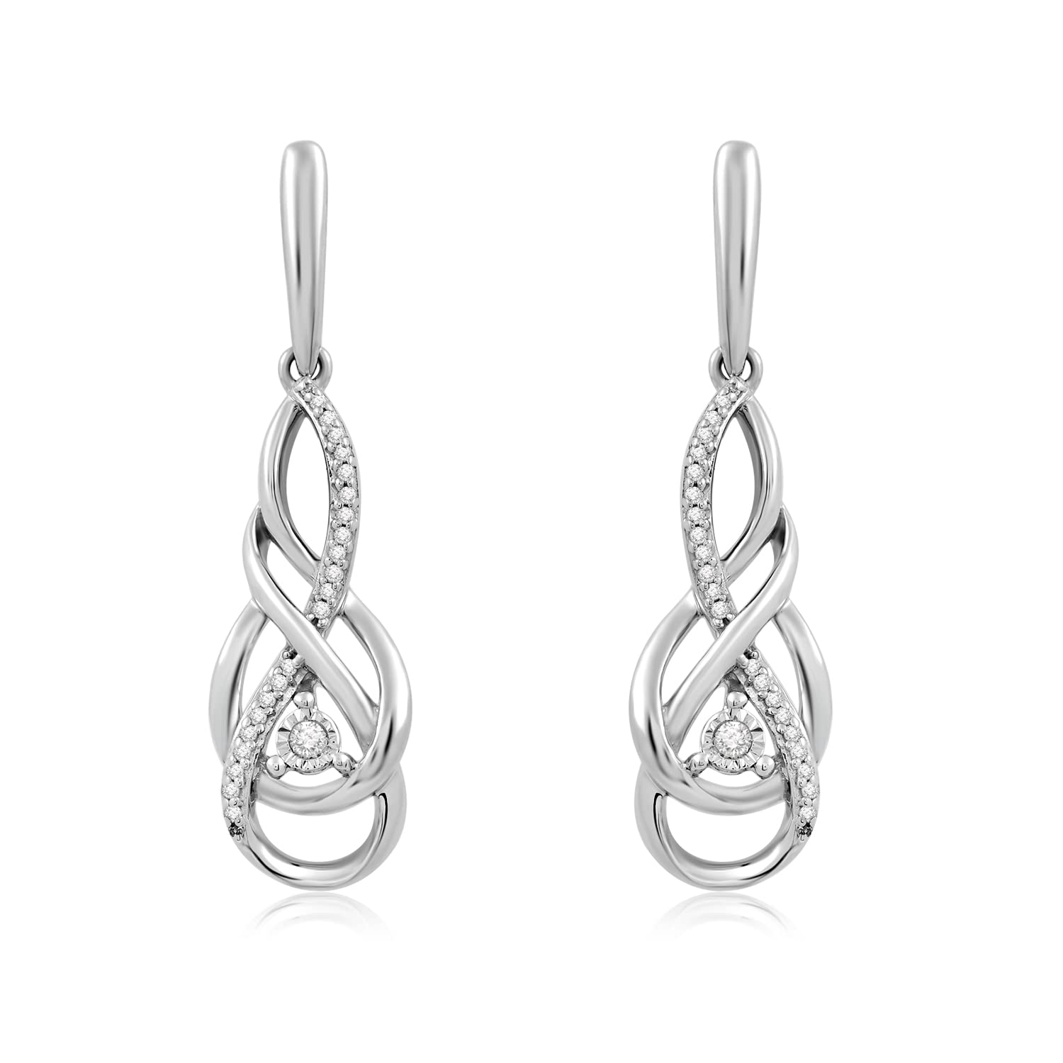 • Dangle Earrings in Sterling Silver with 1/10 Cttw Natural White Round Diamonds