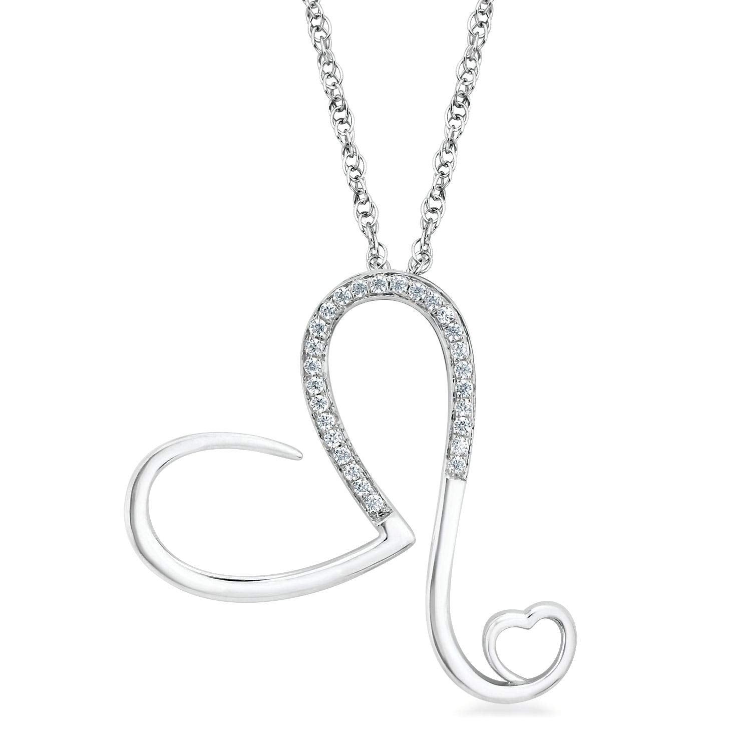 Jewelili Sterling Silver with 1/10 CTTW Natural White Round Diamonds Love Pendant Necklace