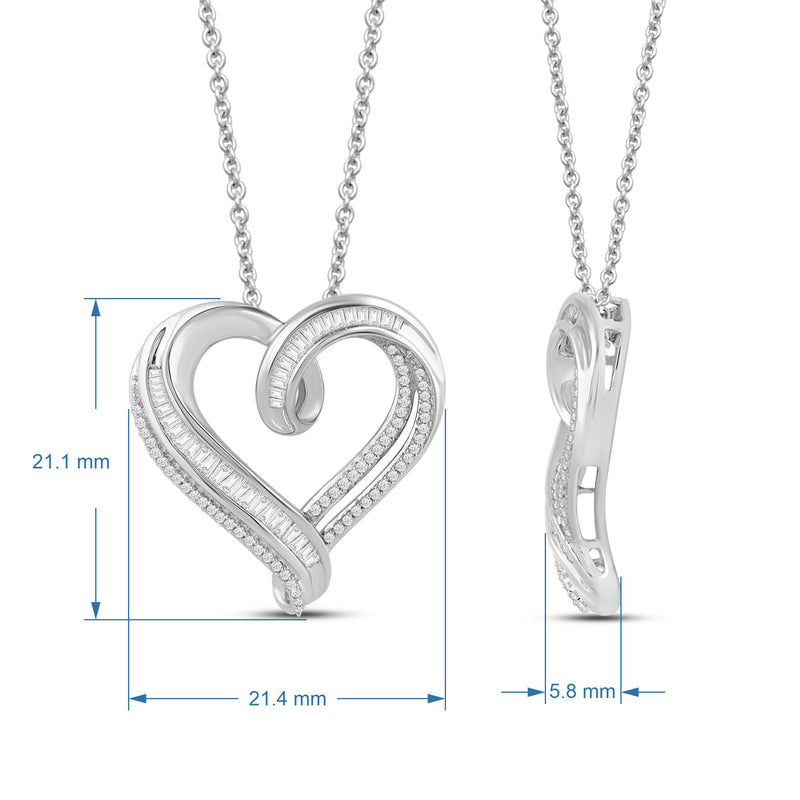 Jewelili Sterling Silver with 1/2 CTTW Diamonds Heart Pendant Necklace