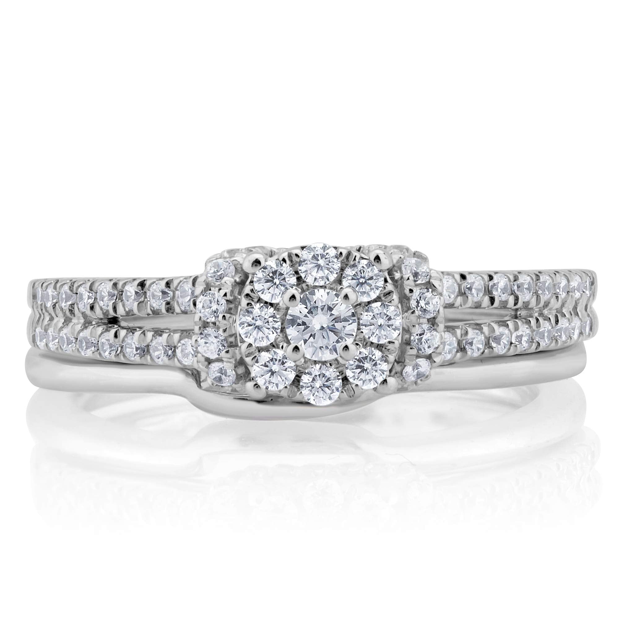 • Sterling Silver With 1/2 Cttw Natural White Diamond Bridal Ring