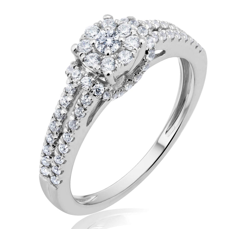 Jewelili Sterling Silver With 1/2 CTTW Natural White Diamond Bridal Ring