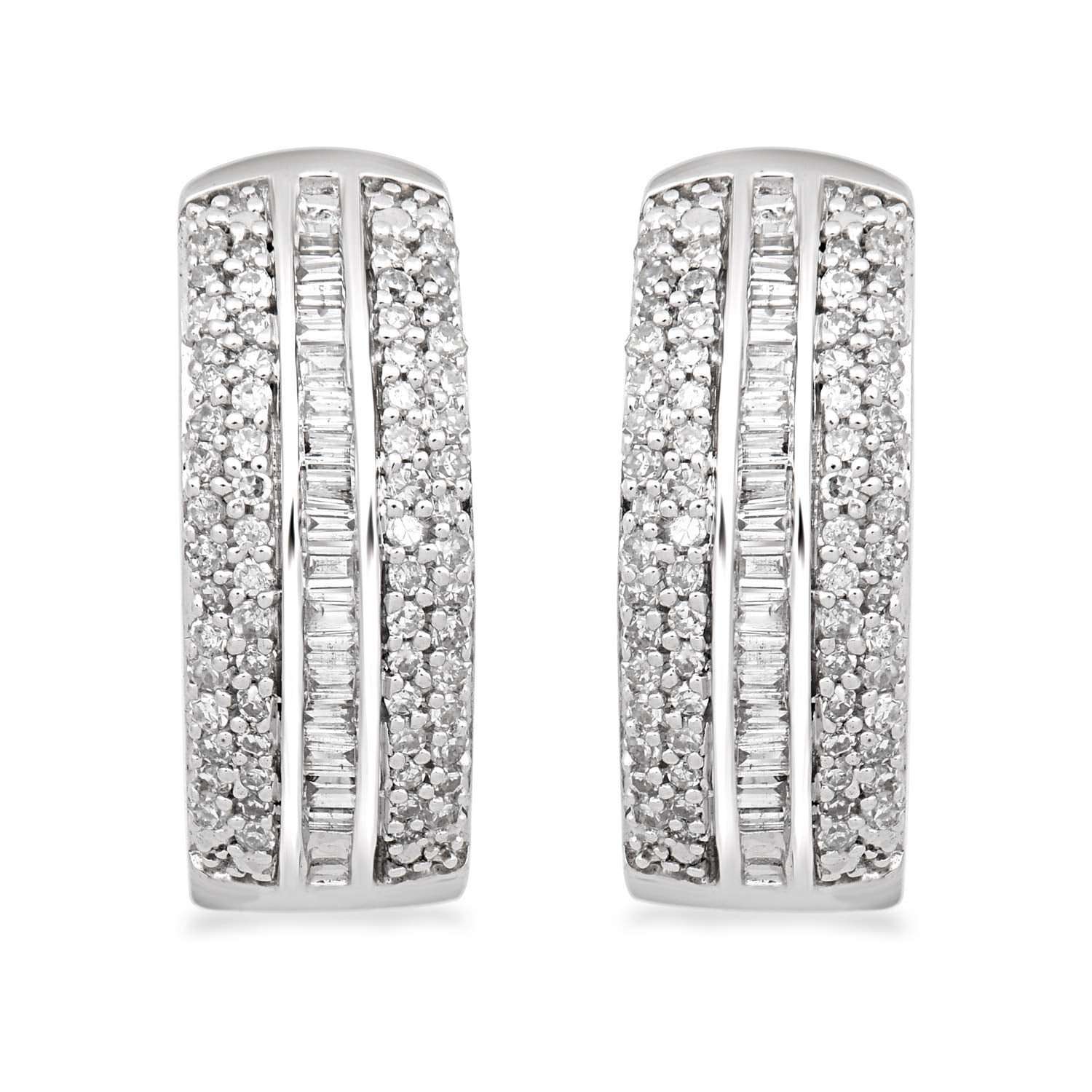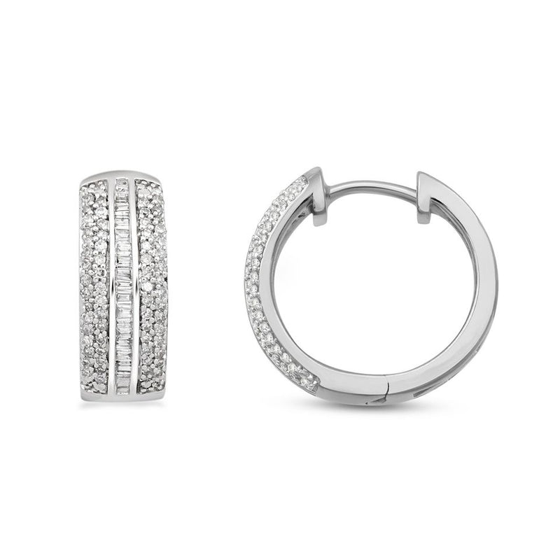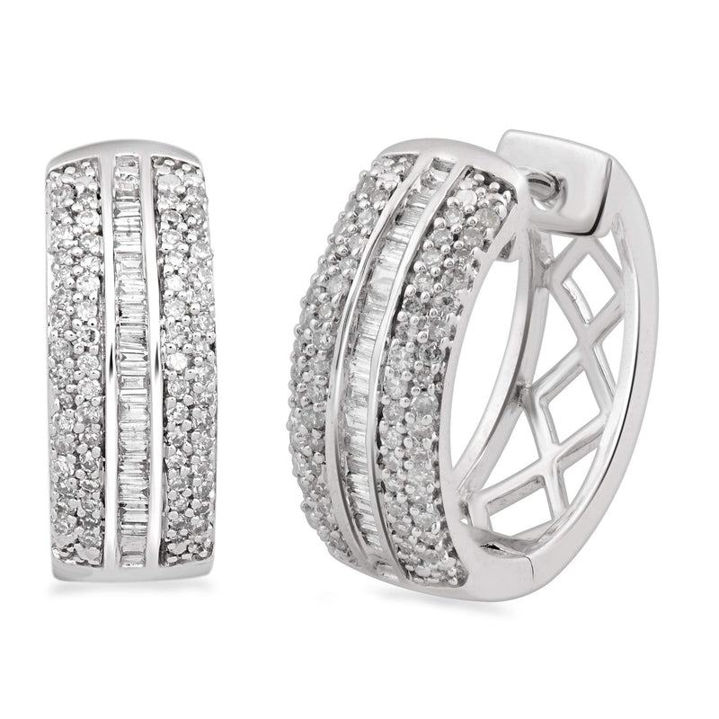 • Sterling Silver With 1/2 Cttw Natural White Diamond Hoop Earrings
