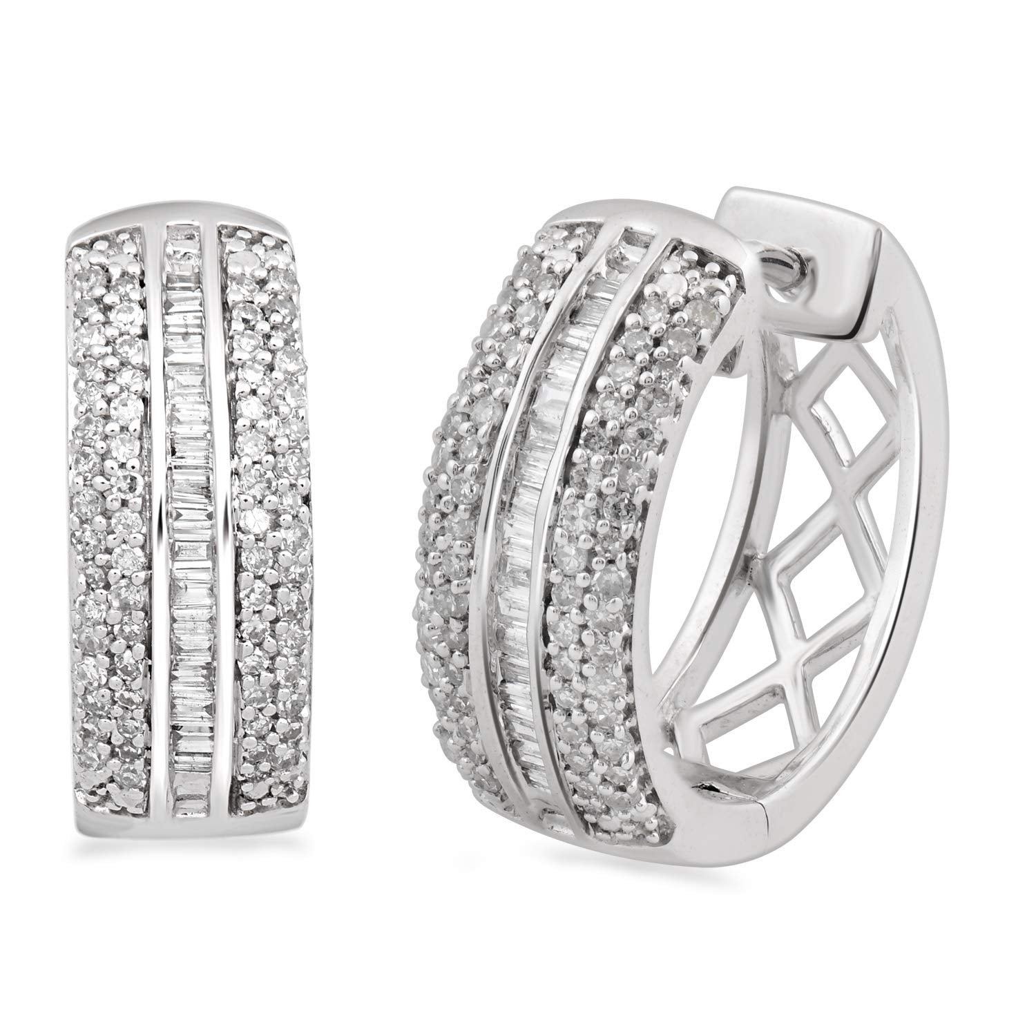 Jewelili Sterling Silver With 1/2 CTTW Natural White Diamond Hoop Earrings