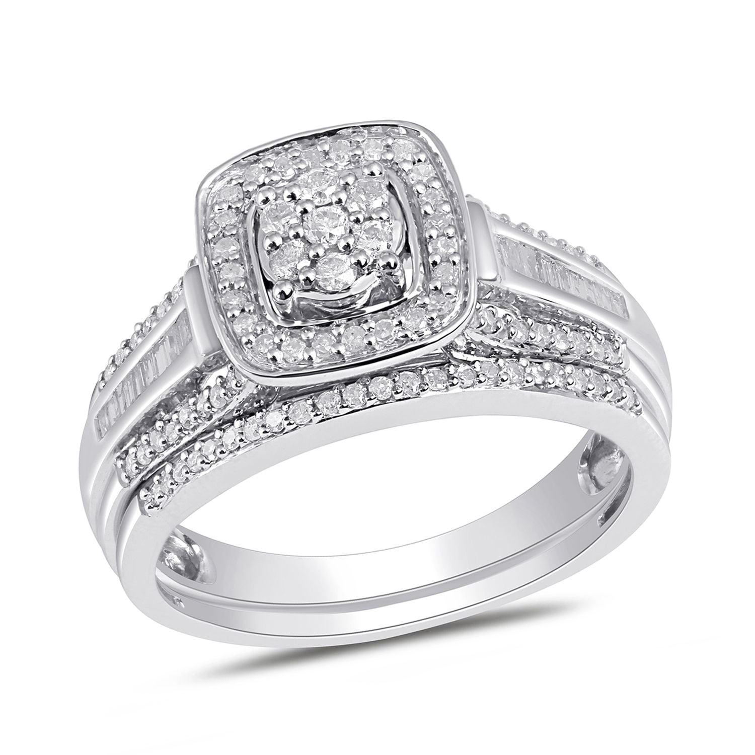 • Sterling Silver With 1/2 Cttw Natural White Diamonds Bridal Set