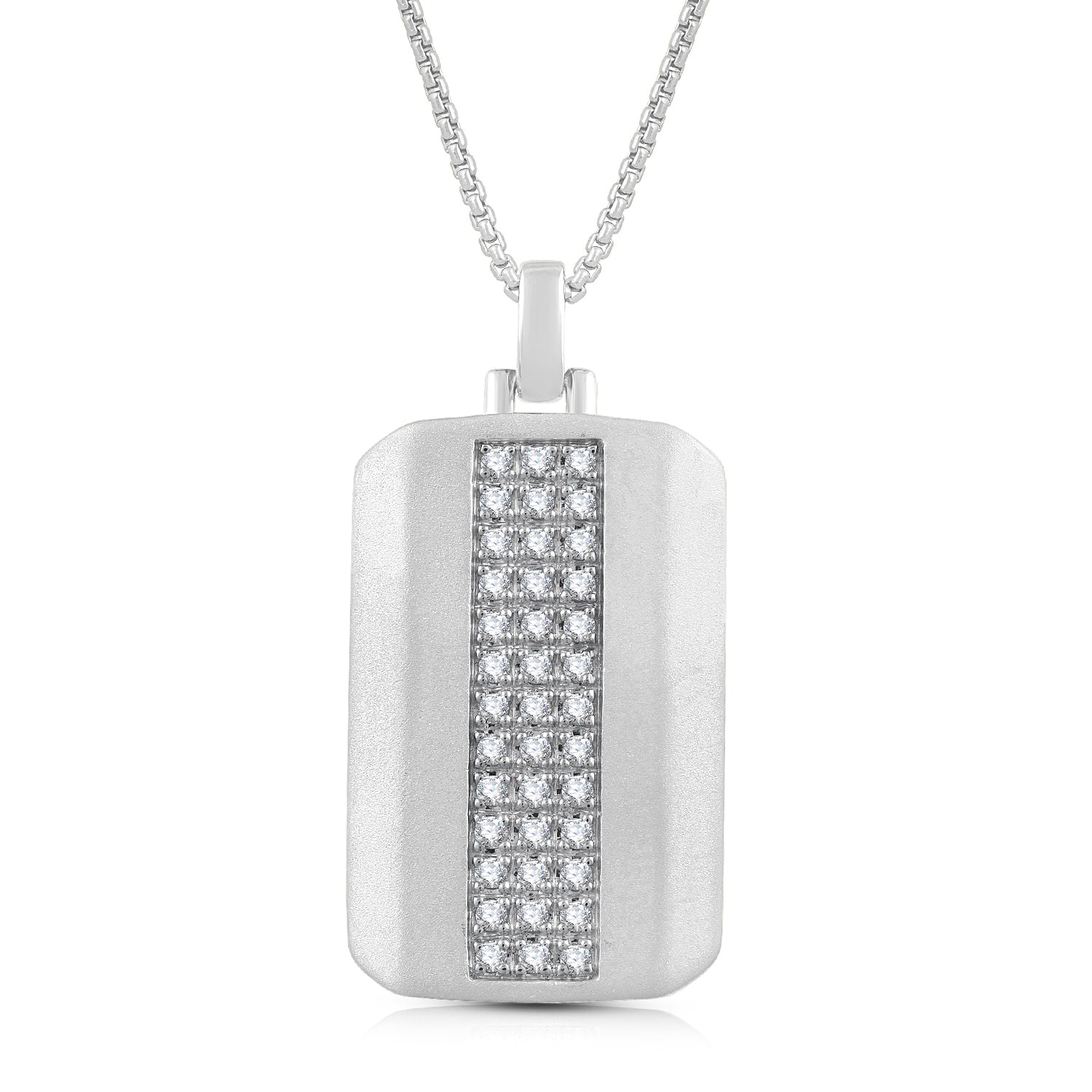 • Sterling Silver With 1/2 Cttw Natural White Diamonds Dog Tag Men's Pendant Necklace