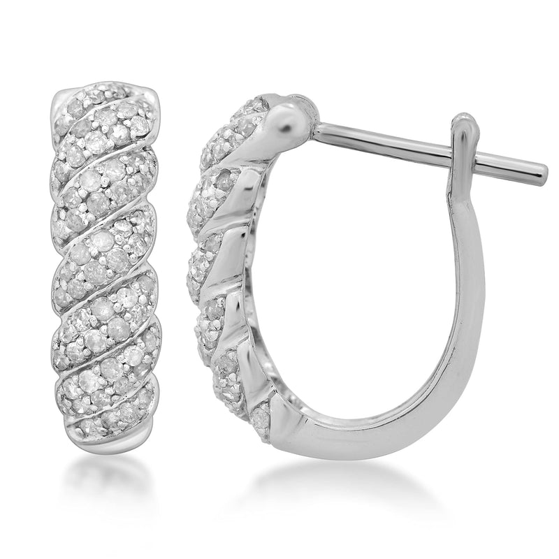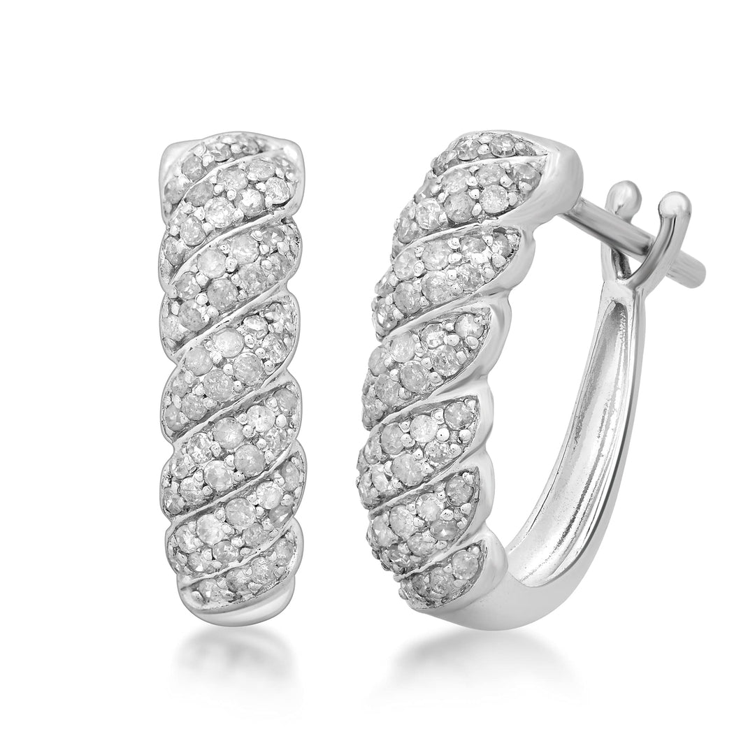 Jewelili Sterling Silver With 1/2 CTTW Natural White Round Diamonds Hoop Earrings