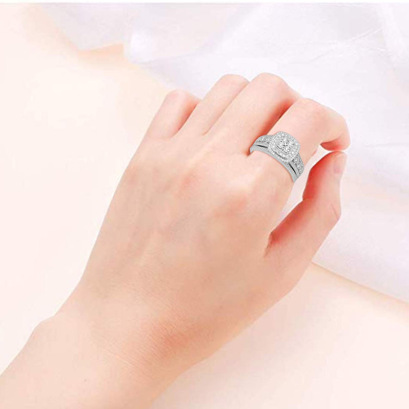 • Load image into Gallery viewer, Jewelili Sterling Silver With 1/2 CTTW Natural White Round Diamonds Bridal Set
