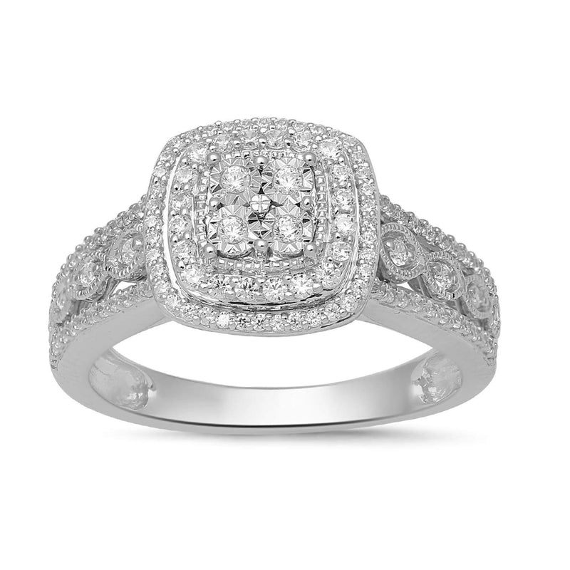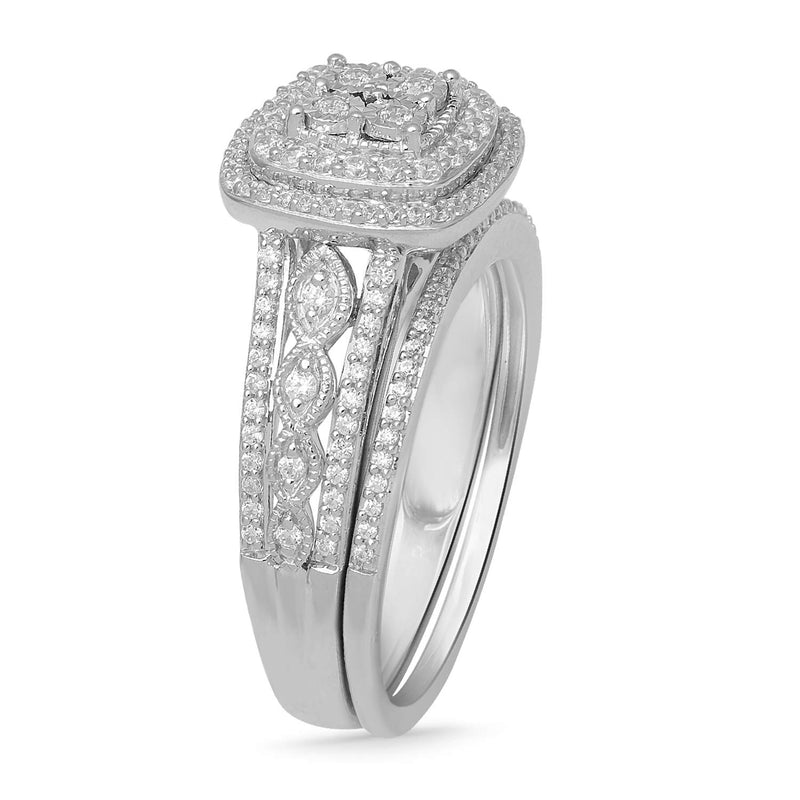 • Sterling Silver With 1/2 Cttw Natural White Round Diamonds Bridal Set