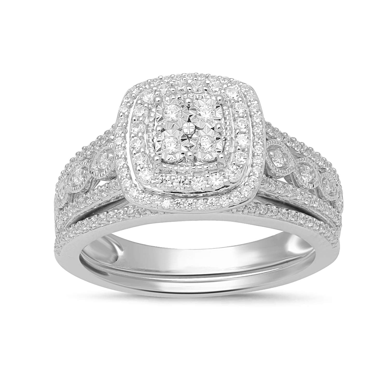 Jewelili Sterling Silver With 1/2 CTTW Natural White Round Diamonds Bridal Set