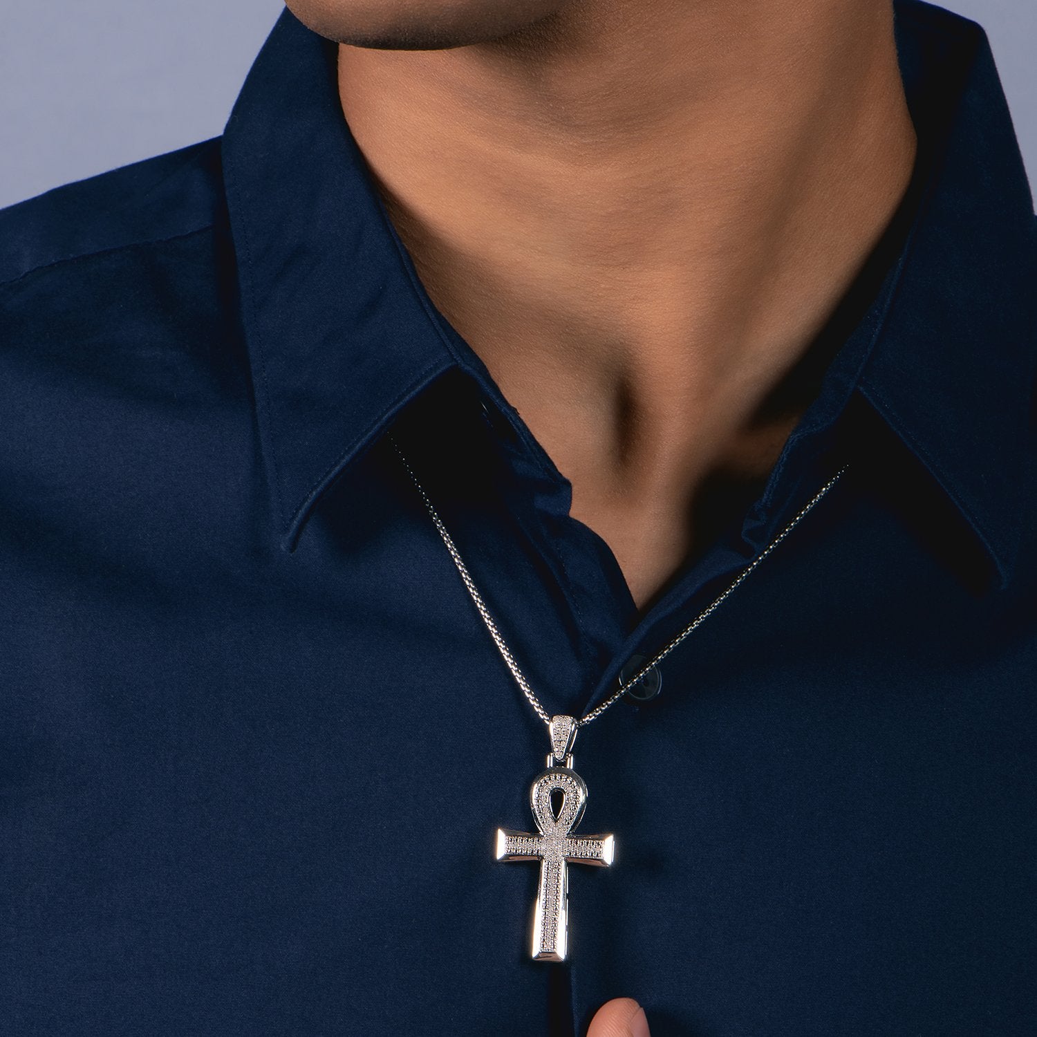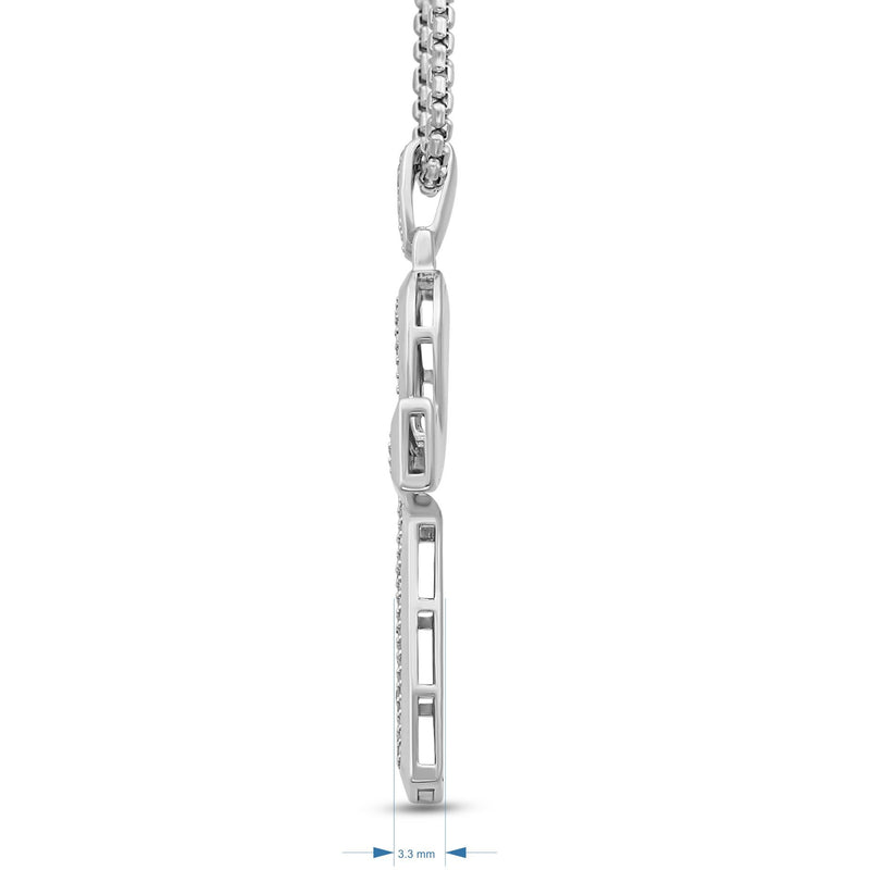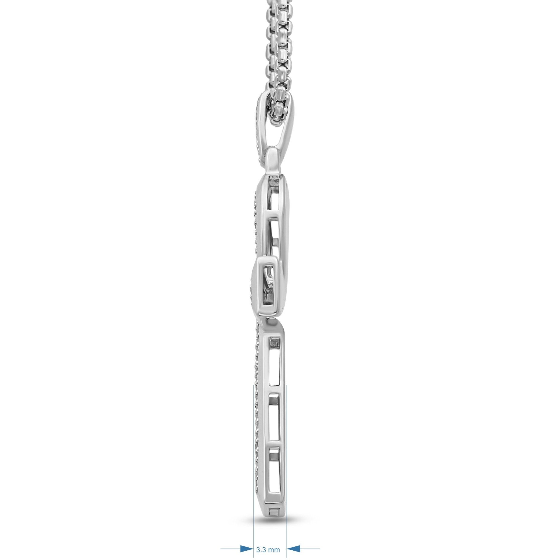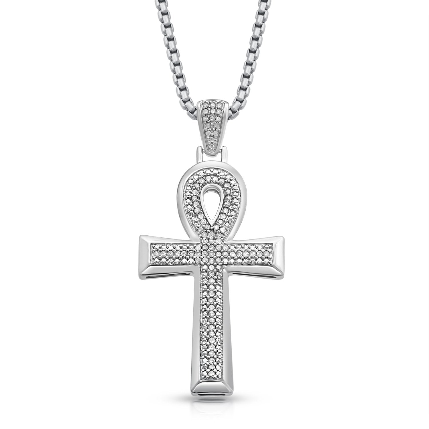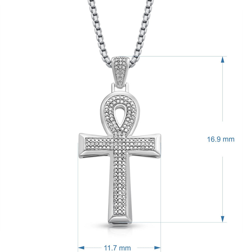 Jewelili Sterling Silver With 1/2 CTTW Natural White Round Diamonds Cross Men's Pendant Necklace