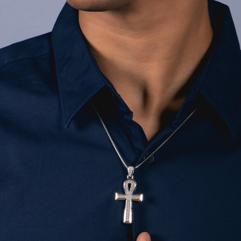 • Load image into Gallery viewer, Jewelili Sterling Silver With 1/2 CTTW Natural White Round Diamonds Cross Men's Pendant Necklace