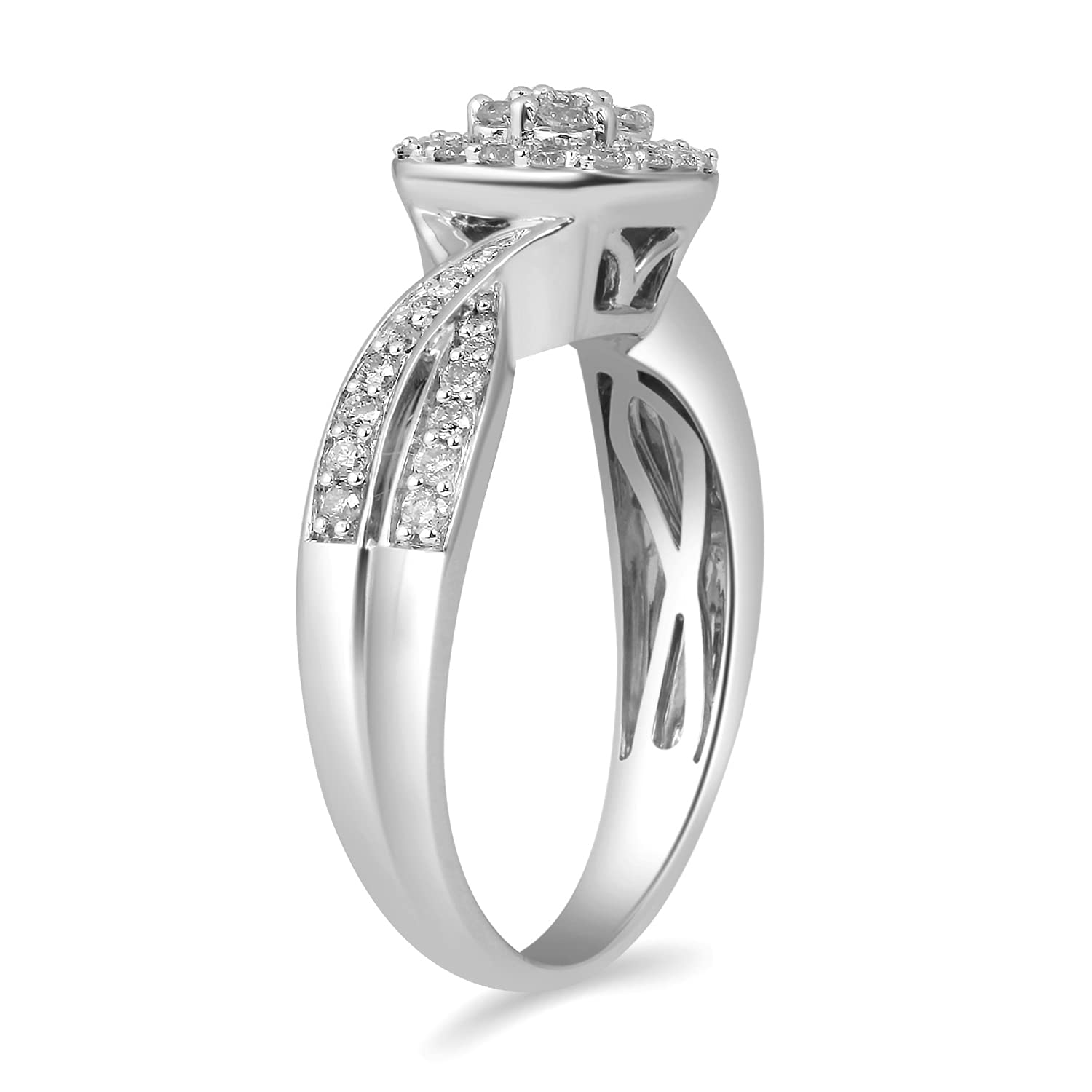 Jewelili Sterling Silver with 1/2 CTTW Natural White Round Shape Diamonds Engagement Ring