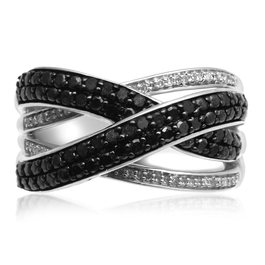 Jewelili Sterling Silver with 1/2 CTTW Round Treated Black and White Diamonds Ring