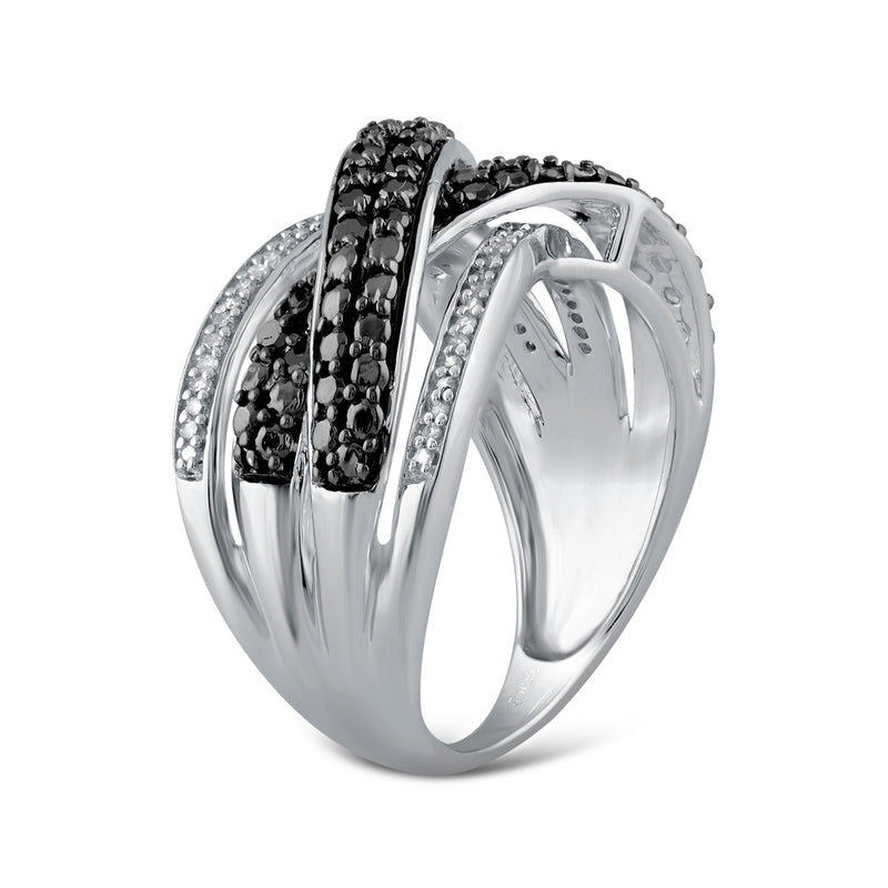 • Sterling silver 1/2 cttw round treated black and white diamonds ring