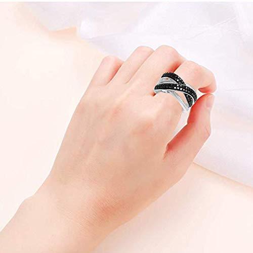 • Load image into Gallery viewer, Jewelili Size 10 Ring with Round Black and White Diamonds in Sterling Silver 1/2 CTTW View 4