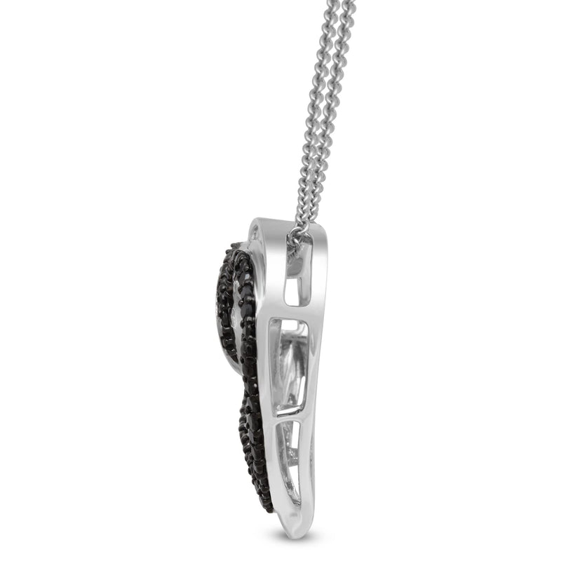 • Load image into Gallery viewer, Jewelili Heart Pendant Necklace with Treated Black and Natural White Diamonds in Sterling Silver 1/2 CTTW View 3