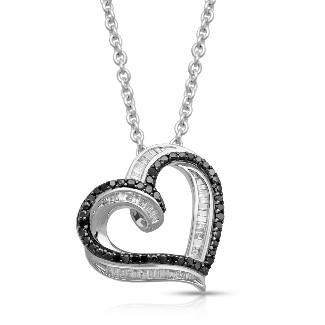 Jewelili Sterling Silver With 1/2 CTTW Treated Black and Natural White Diamonds Heart Pendant Necklace